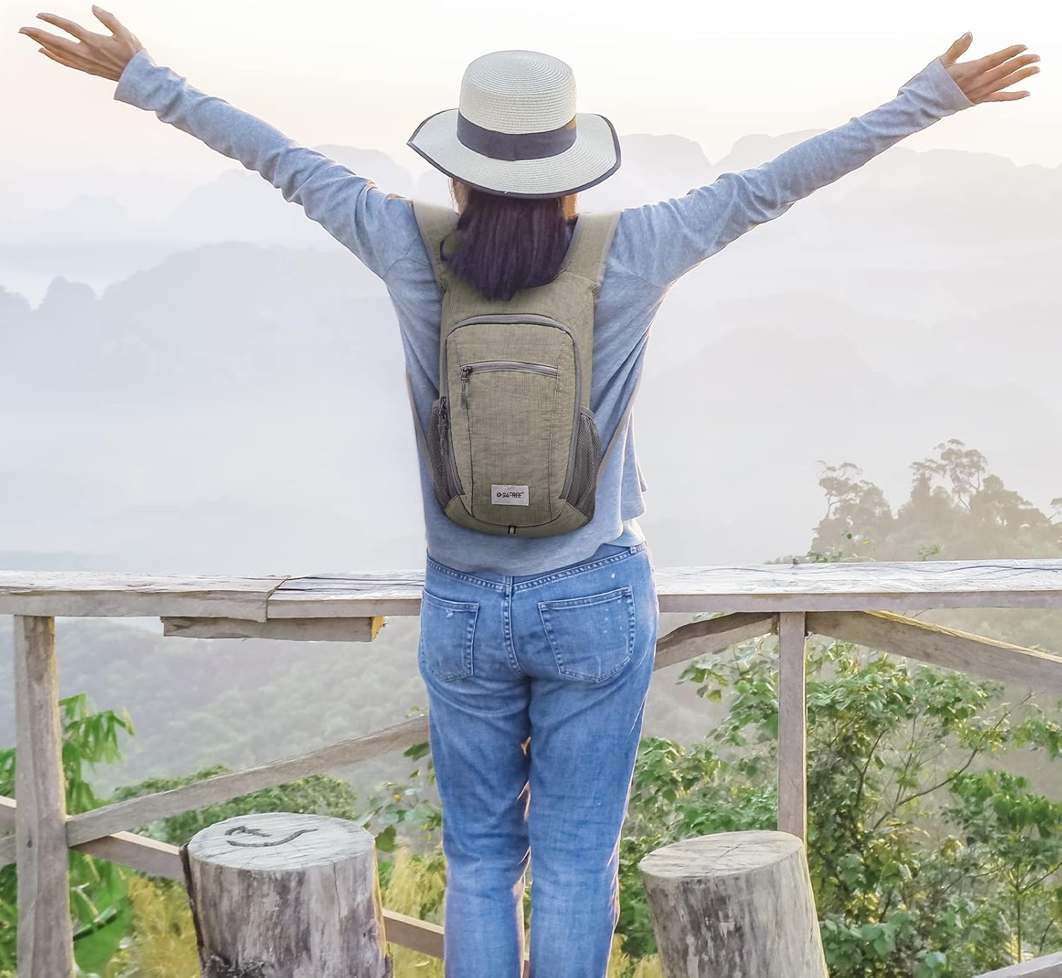 - ENOUGH CAPACITY& LIGHTWEIGHT: One front compartment holds your tissue key or earphone. One main compartment fits your travel essentials: such as clothes and Umbrella. Two side pockets keep your things organized and separated. This lightweight backpack is only 0.56lb, and is easy to carry and use.