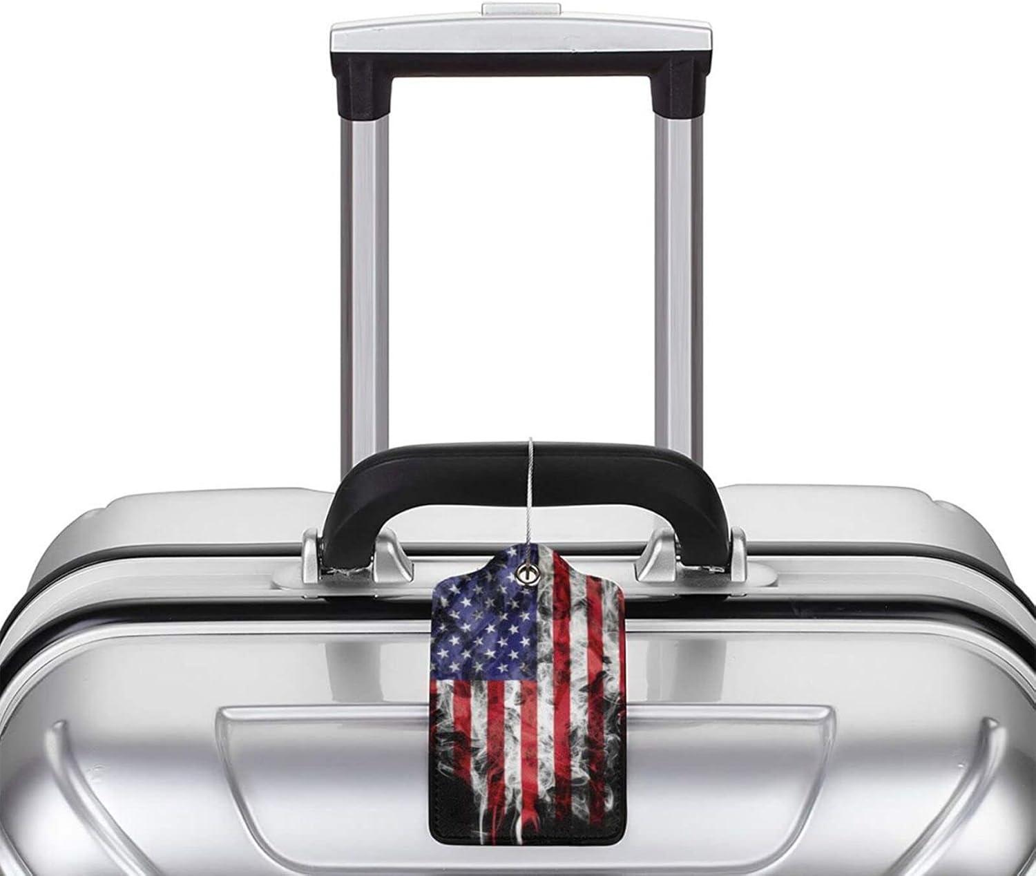 2 Pack American Flag Luggage Tags for Suitcases, Cool Leather Luggage Tag for Travel, Bag Tag Privacy Name ID Card Bag Labels for Friends Adults Kids Tourists
