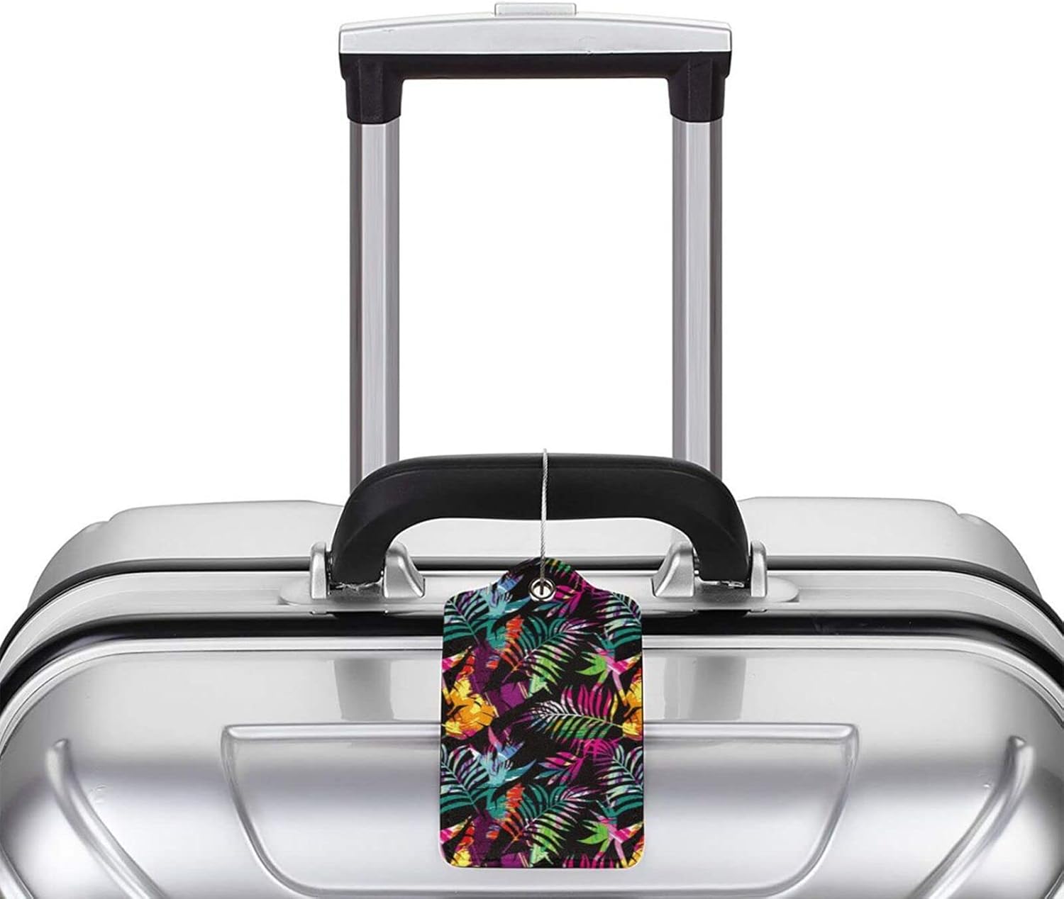 2 Packs Colorful Palms Crew Luggage Tag for Adult Kids, Tropical Flavour Suitcase Tag Labels Leather Travel Baggage Identifiers Tags