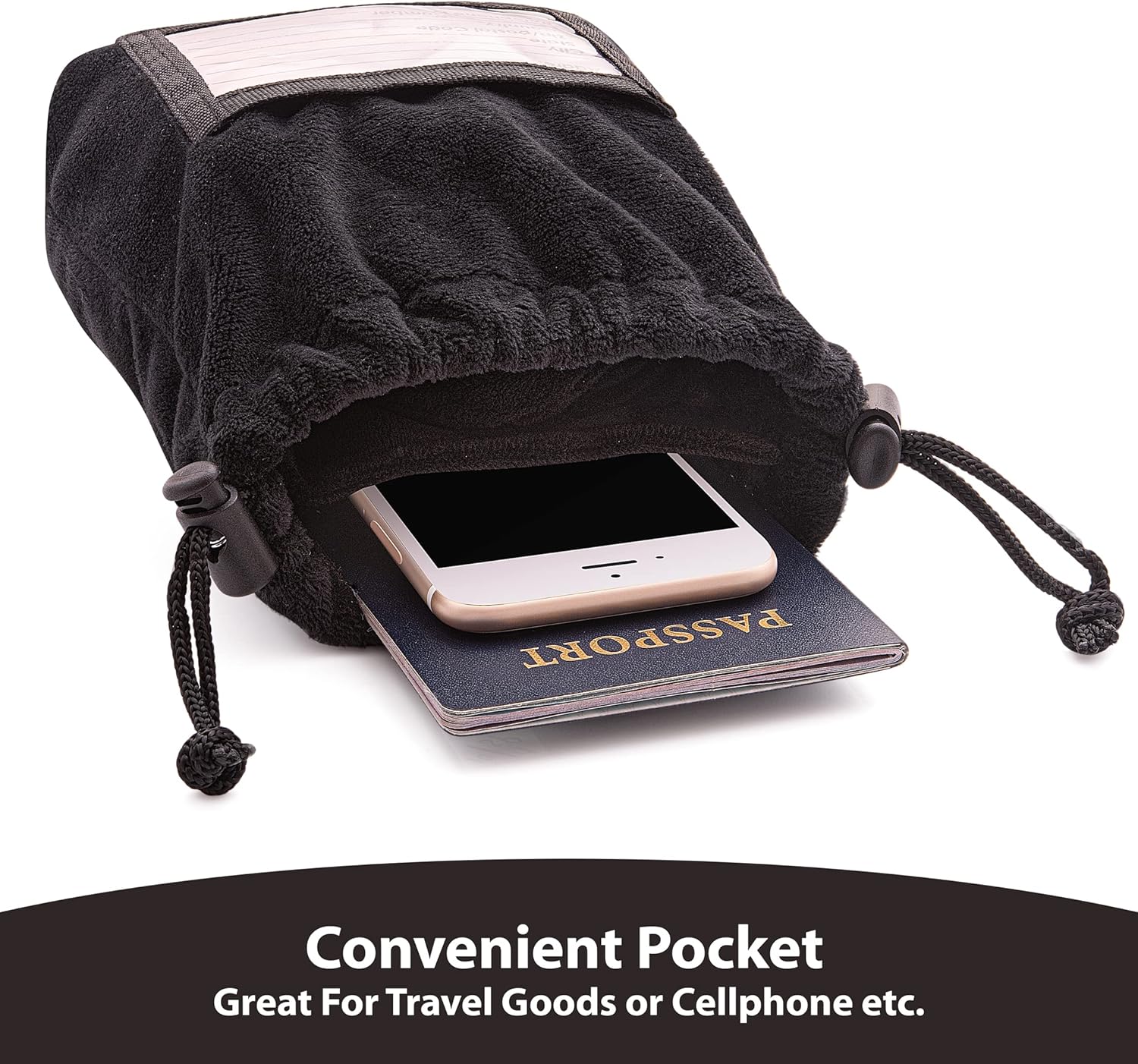 - PASSPROT CELL PHONE CASE: Another bag to handle in not easy, and who is talking if you want to get a good SLEEP and nothing else, but where are you going to put your phone passport / card and important stuff. We got you good news! You will find a hidden pocket in the pillow case you can put your travel needs, so no need to fly around your important stuff. You should have all in one, for an organized and happy trip