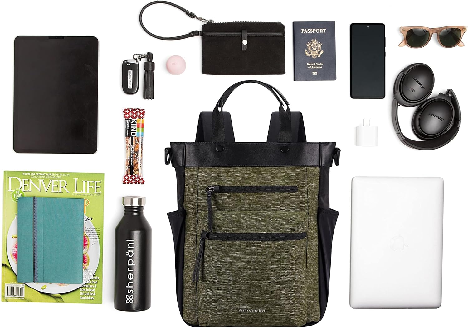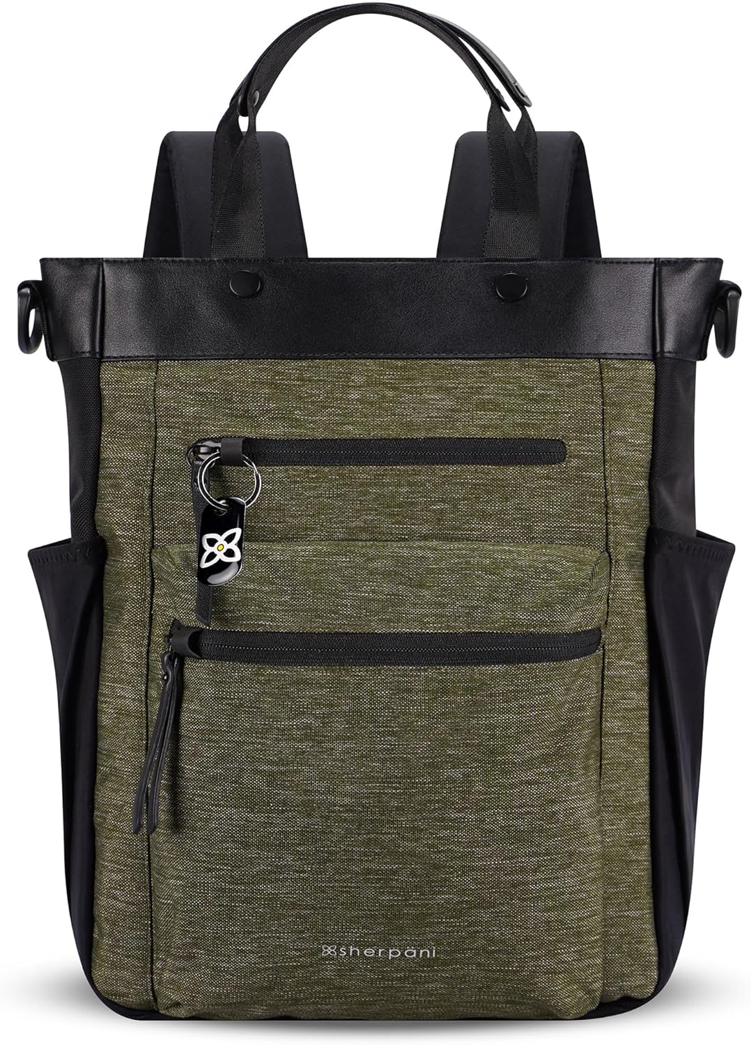 Sherpani Soleil, Anti Theft Convertible Backpack, 3 in 1 Tote Bag, Crossbody Bag, Cross Body Purse, 18L Travel Backpack, Travel Gifts for Women, RFID Protection, Fits 13” Laptop (Loden Lite)