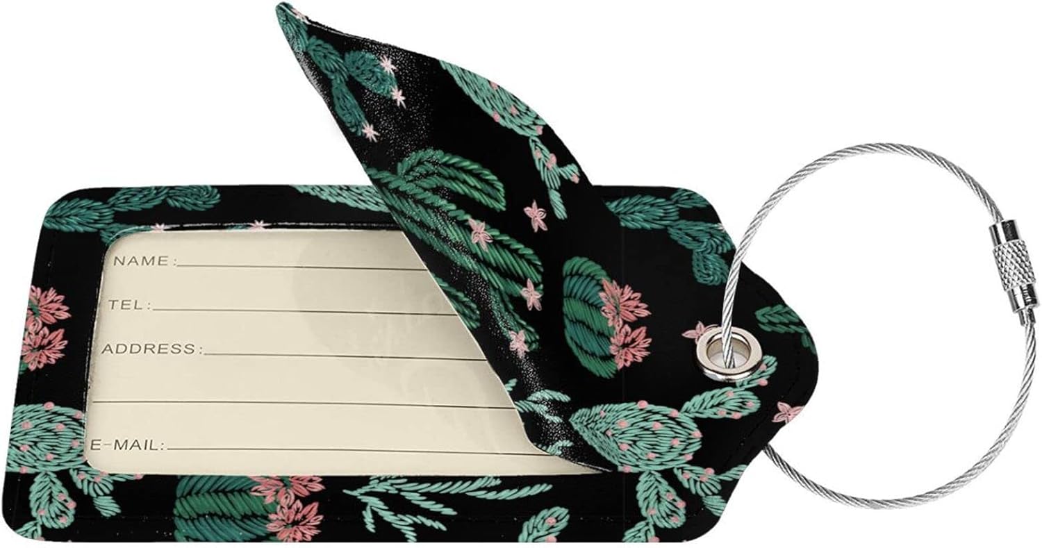 2 Pcs Cute Cactus Luggage Tags for Suitcases for Women Girls Boys Men Travel, Funny Leather Bag Tags Suitcase Labels for Luggage Backpack with Stainless Steel Loop, Full Back Privacy Cover