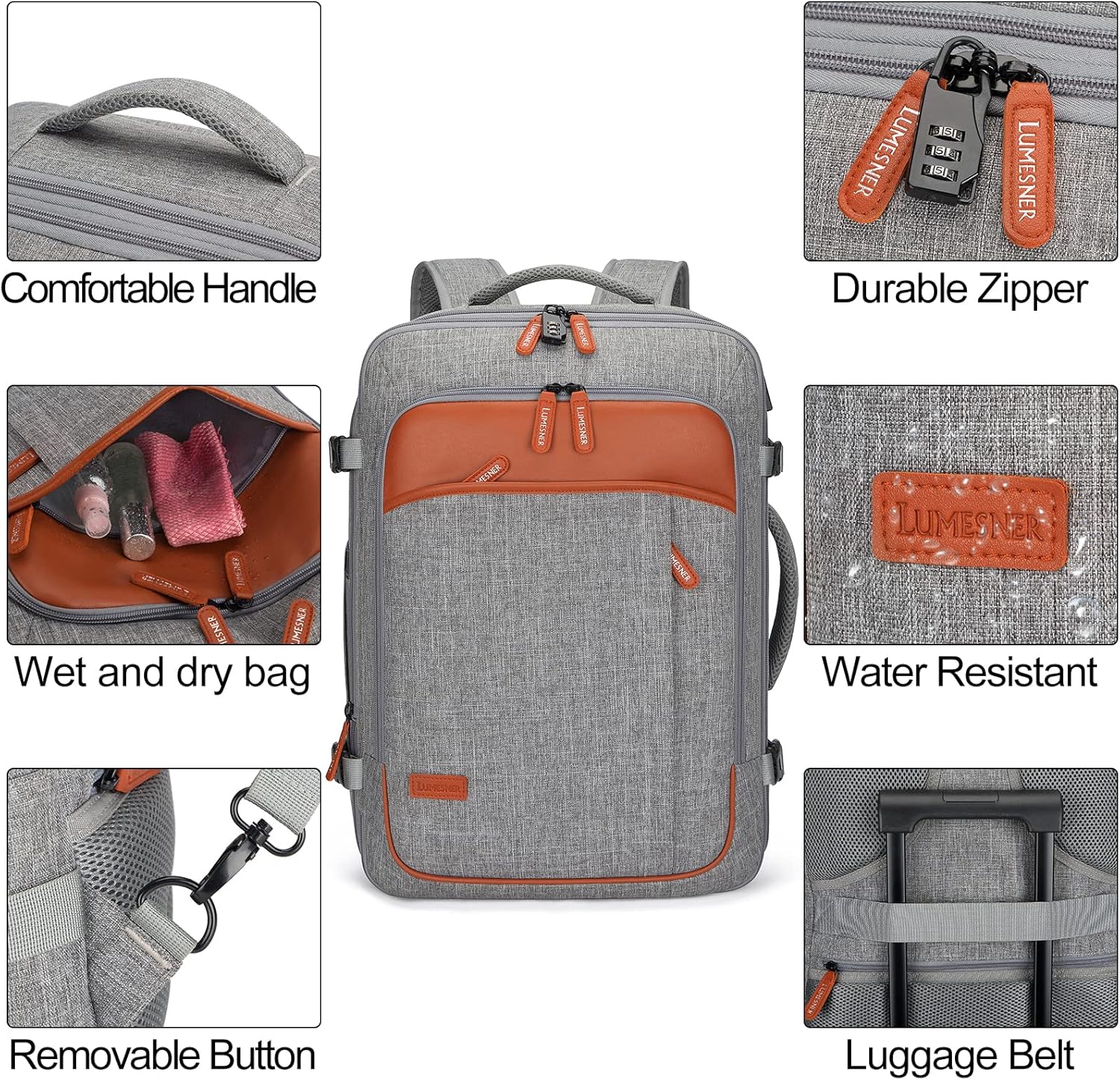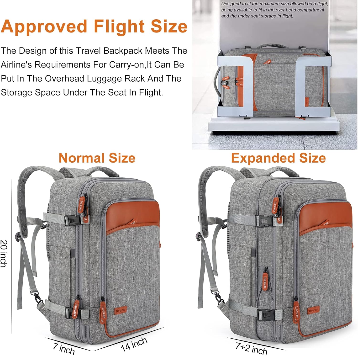 - LARGE CAPACITY & EXPANDABLE:This extra large travel backpack with expandable feature offers you more packing capacity up to 40L.Unzipping to get larger storage space then can easily hold packing cubes, make-up bag, outfits, camera bag and gear for 3~7 days of travel.The carry on backpack fits overhead and under seat while on state of standard carry on size, is ideal for men, women, weekend traveler, or occasional vacationer.