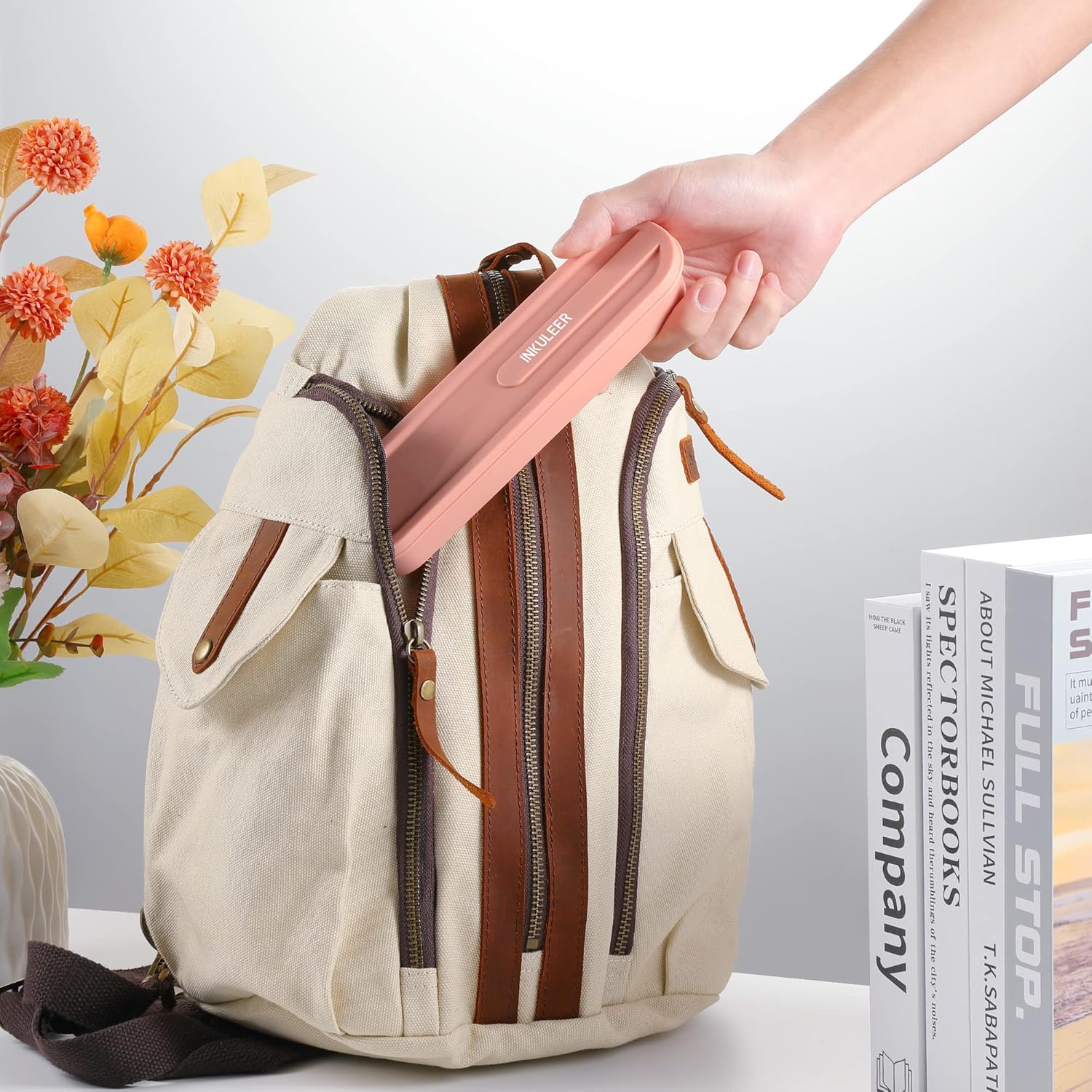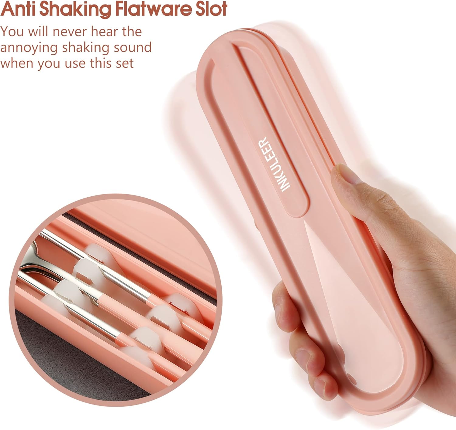 Travel cutlery set, 18/8 stainless steel cutlery, Reusable utensils set with case, Portable Silverware Lunch Box for Camping and Office(Pink)