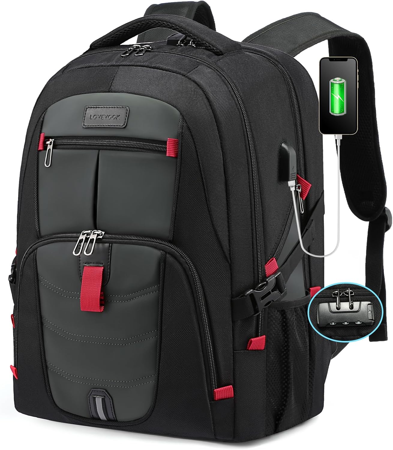 LOVEVOOK 17 inch Travel Laptop Backpack, DarkGrey, Waterproof, Anti-Theft with Lock, USB Charging Port, Large Capacity, Multi-Purpose