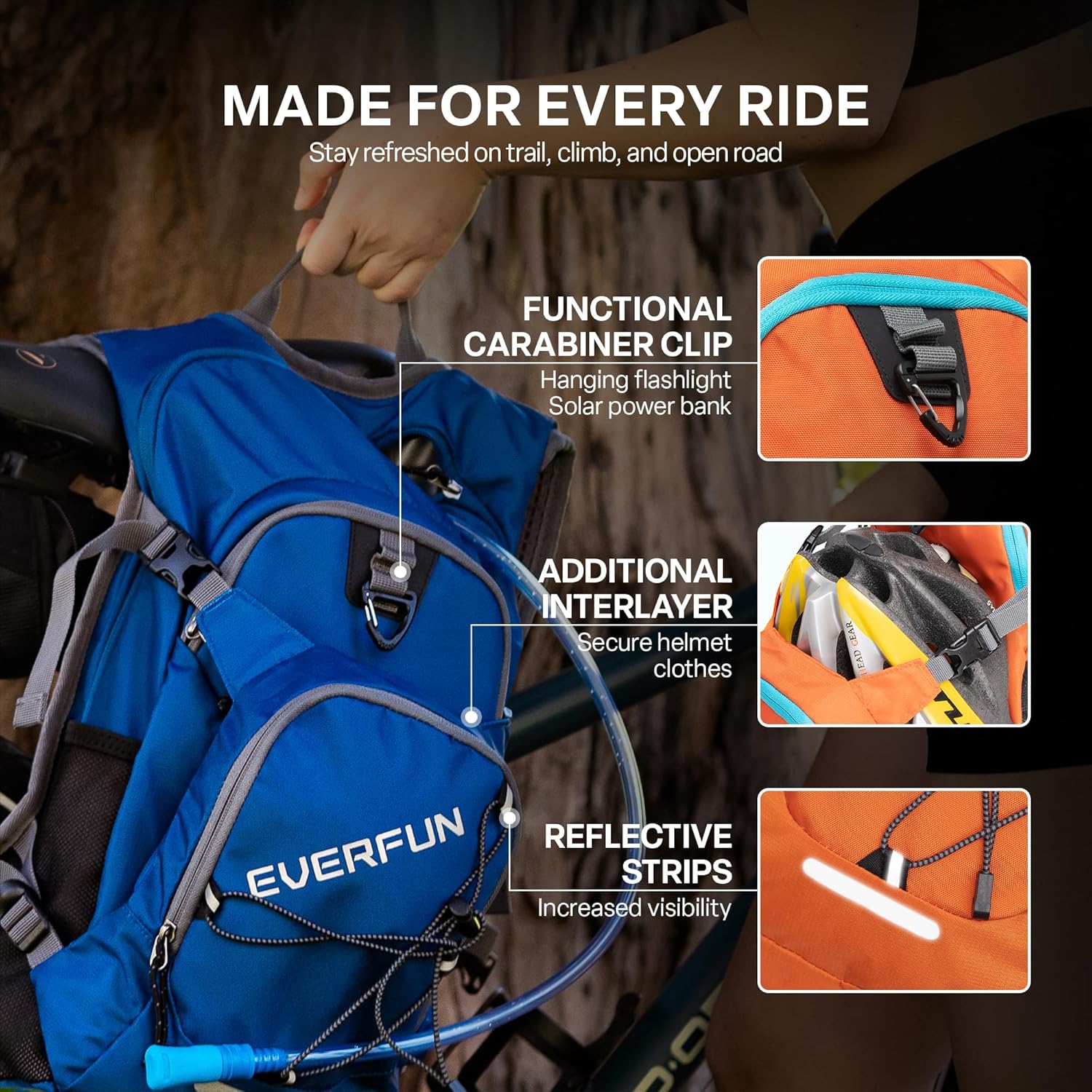 Everfun Hydration Backpack 18L with Water Bladder 2L/3L Hiking Water Backpack Women Men Hydration Pack Insulated Lightweight Day Hydropack with Storage for Hiking, Biking, Running, Festival