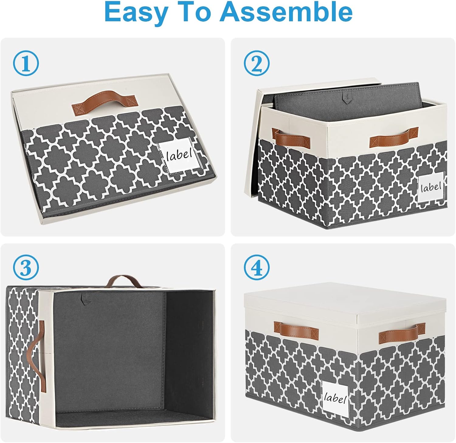 - 【Convenient Design】This storage bins with lids comes with 3 sturdy faux leather handleson, strong handles convenient for you to pull out the storage bins from the shelves and easy carry to everywhere. Each large storage bins with lids has an label, you can quickly categorize items and reduce the hassle of searching for what you need..Trust us to provide you with a practical and convenient storage solution that will simplify your life.
