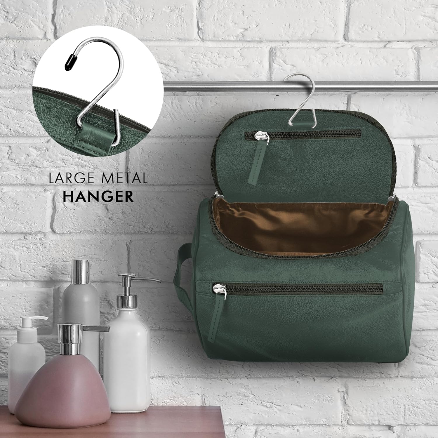 - SPACIOUS & STYLISH - This mens grooming bag is versatile and suitable for both men and women and available with large size measuring 5.25" H x 9" L x 5.5", with mulitple pockets spacious enough for you to carry all your travel essentials during long trips and includes a sturdy solid brass hook will hang a full bag effortlessly. This bathroom dopp shaving cosmetic bag provides the perfect balance between convenience and capacity while travelling with style.