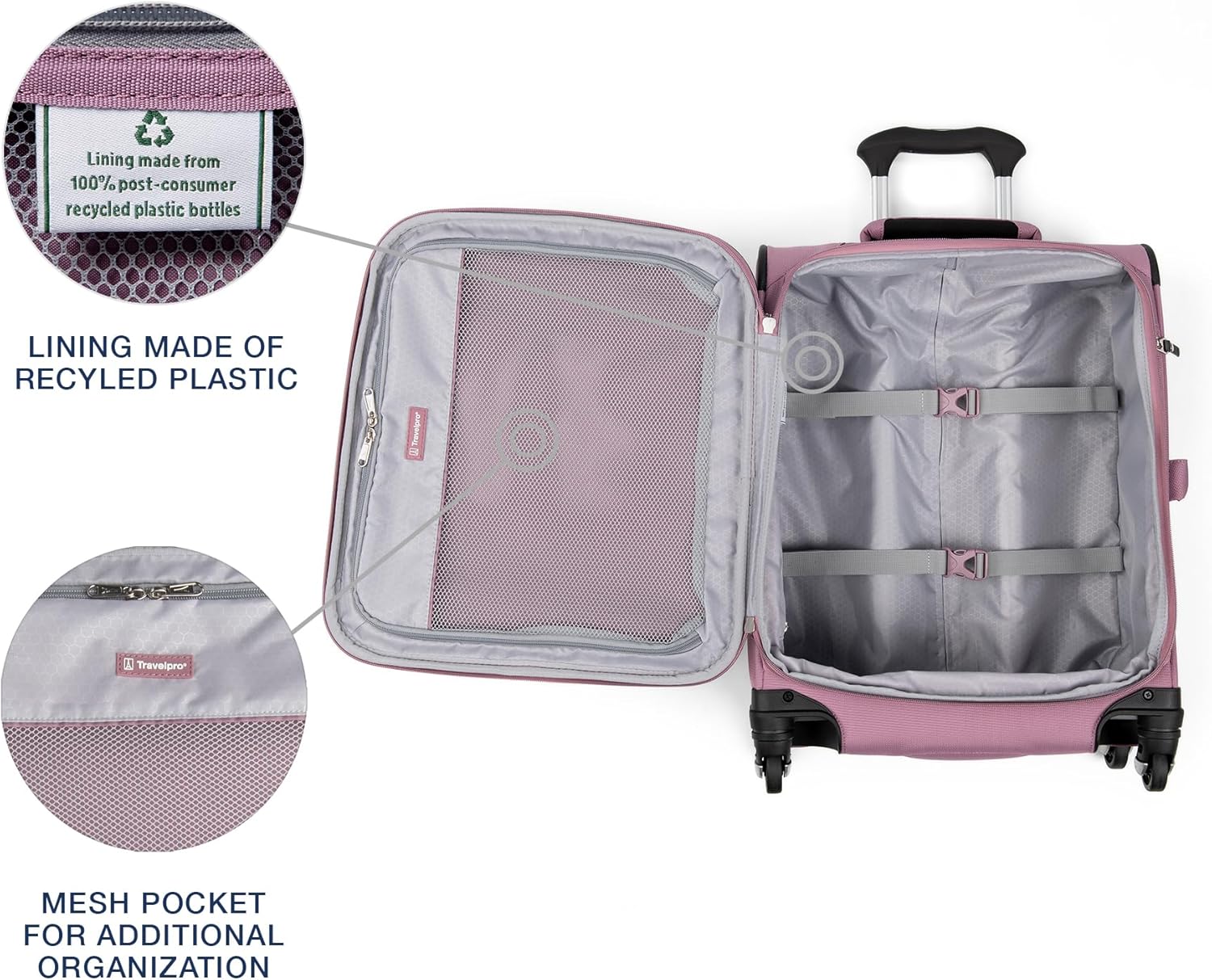 - DURABLE & ECO-FRIENDLY: Made from stain-resistant polyester with water-resistant DuraGuard coating and ergonomic, high-strength zippers for lasting durability. Interior lining uses recycled plastics and stays protected from moisture with H2O Guard.