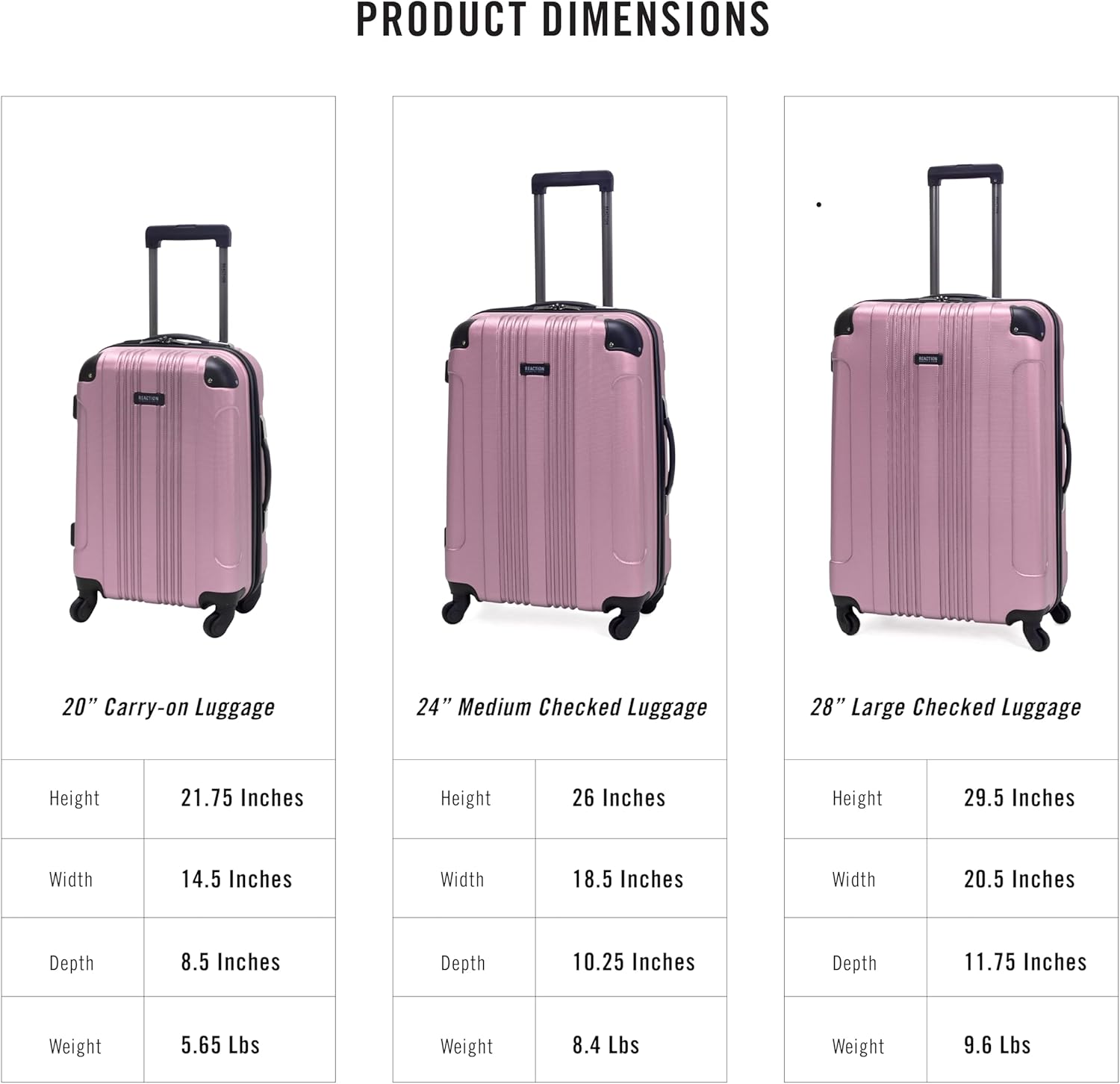 - BASH AND BUMP READY. DURABLE AND LIGHTWEIGHT luggage that is made of a shock resistant ABS exterior with reinforced protective molded corner guards that absorb shock for maximum impact resistance.