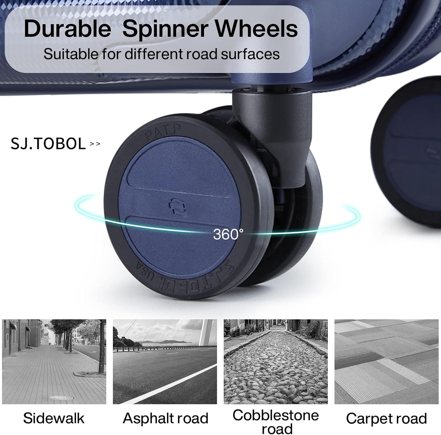 - 【High Quality Accessories】SJ . TOBOL durable spinner wheels,It is composed of precision shaft center and thickened TPE wheel skin, which is very wear-resistant,quieter and has strong bearing capacity, It is applicable to different roads such as cobblestone road and carpet road. Smooth and durable 5-strand reinforced explosion-proof zipper reverse coil prevents burst zipper. Travel-approved combination lock is safe and convenient. Ergonomics telescopic handle with multi-steps adjustment.