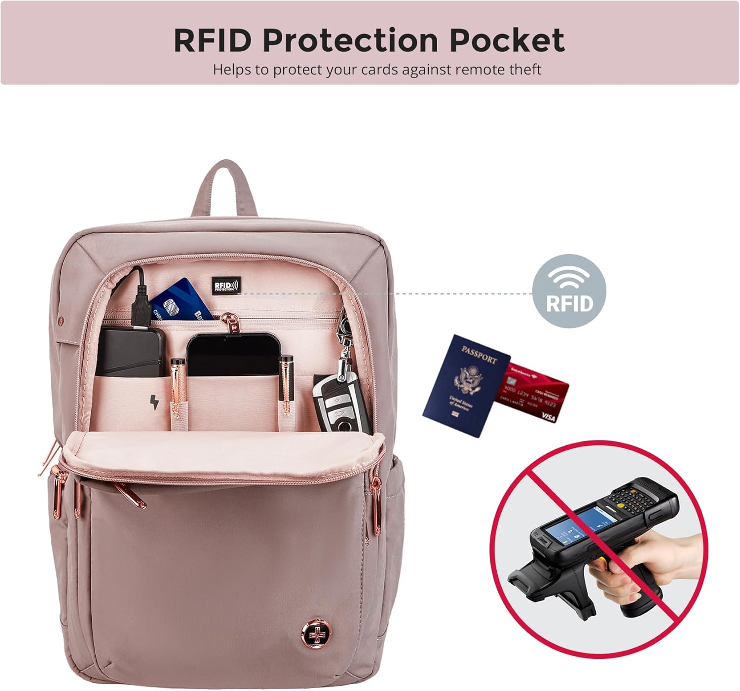 Swissdigital Design Laptop Backpack For Women,College Bookbags With USB Charging Port,Cute Computer Backpacks For Work Business,Pink | KATY ROSE