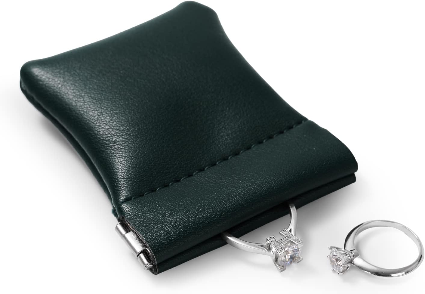 2 Pack PU Leather Slim Engagement Wedding Ring Pouch Leather Jewelry Pouch Christmas,Wedding Party Favor Gift Bag(Dark Green)