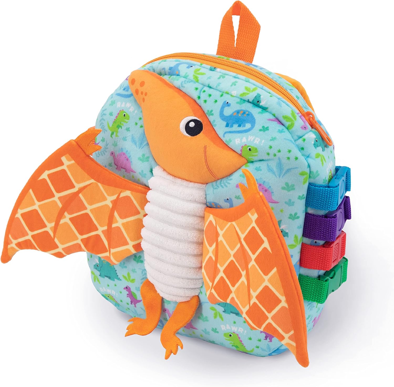 Buckle Toys Breezy Pterodactyl Dinosaur Toddler Backpack with Buckles & Toddler Learning Activities and Sensory Toys for Toddlers 1-3, Travel Essentials Road Trip Activities for Fine Motor Skills