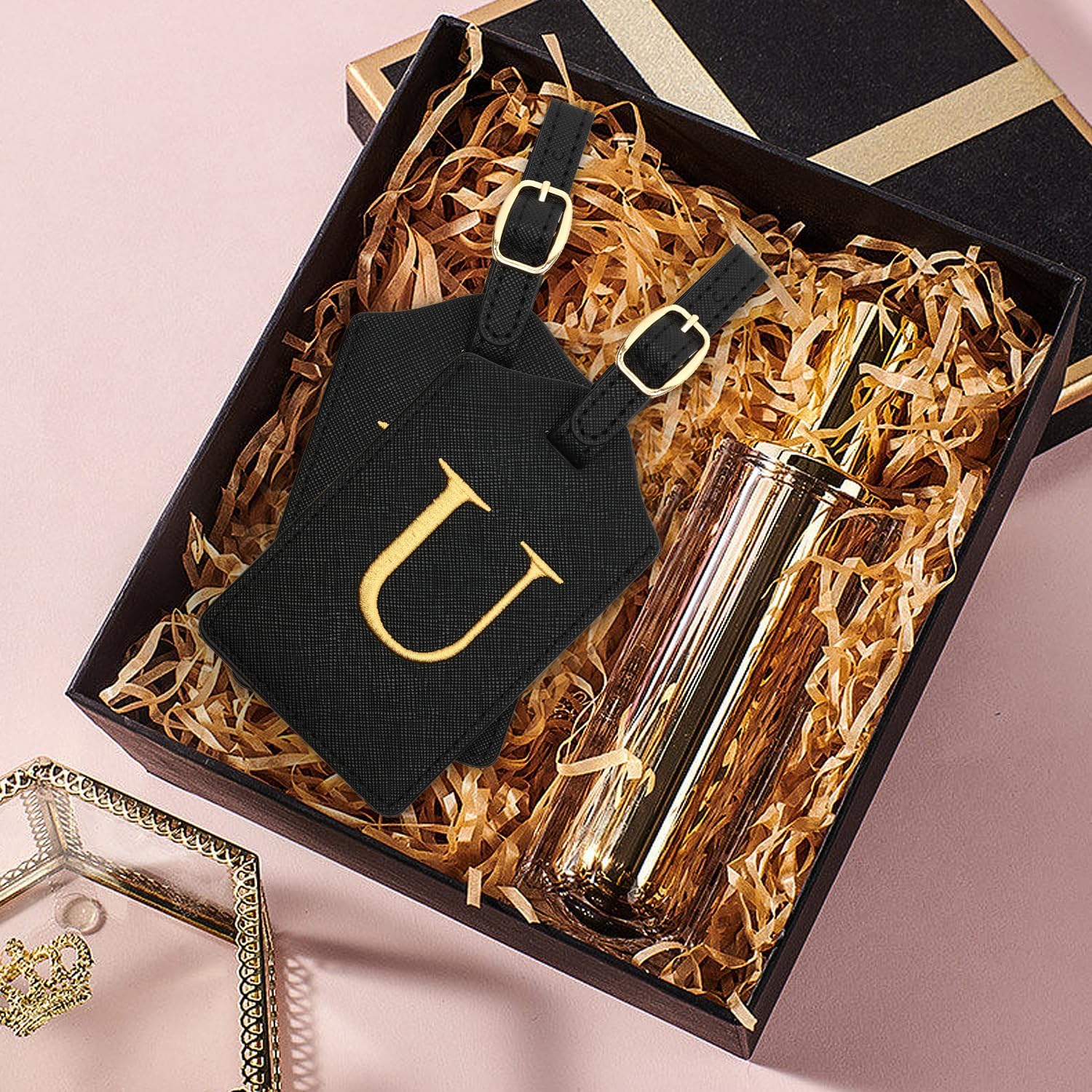 - EMBROIDERED INITIAL LUGGAGE TAG - Each black tag comes with embroidered letter in color gold. The bright color and size will help your suitcases be more easily recognizable at baggage claim.