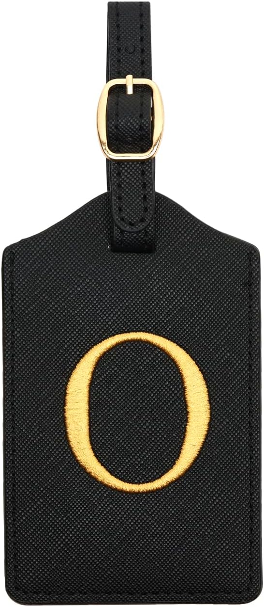 - EMBROIDERED INITIAL LUGGAGE TAG - Each black tag comes with embroidered letter in color gold. The bright color and size will help your suitcases be more easily recognizable at baggage claim.