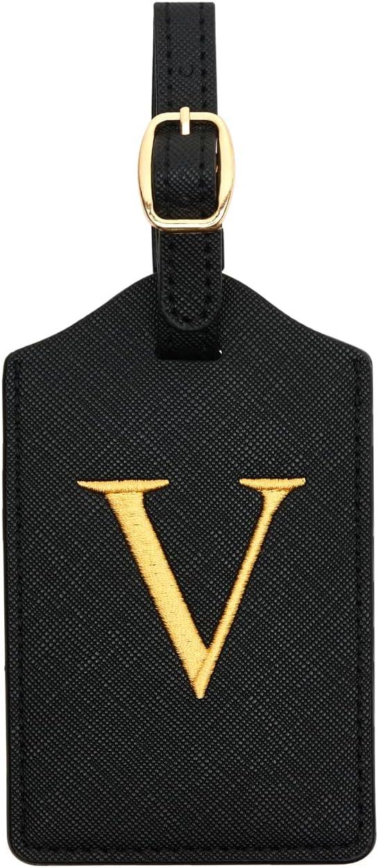 - EMBROIDERED INITIAL LUGGAGE TAG - Each black tag comes with embroidered letter in color gold. The bright color and size will help your suitcases be more easily recognizable at baggage claim.