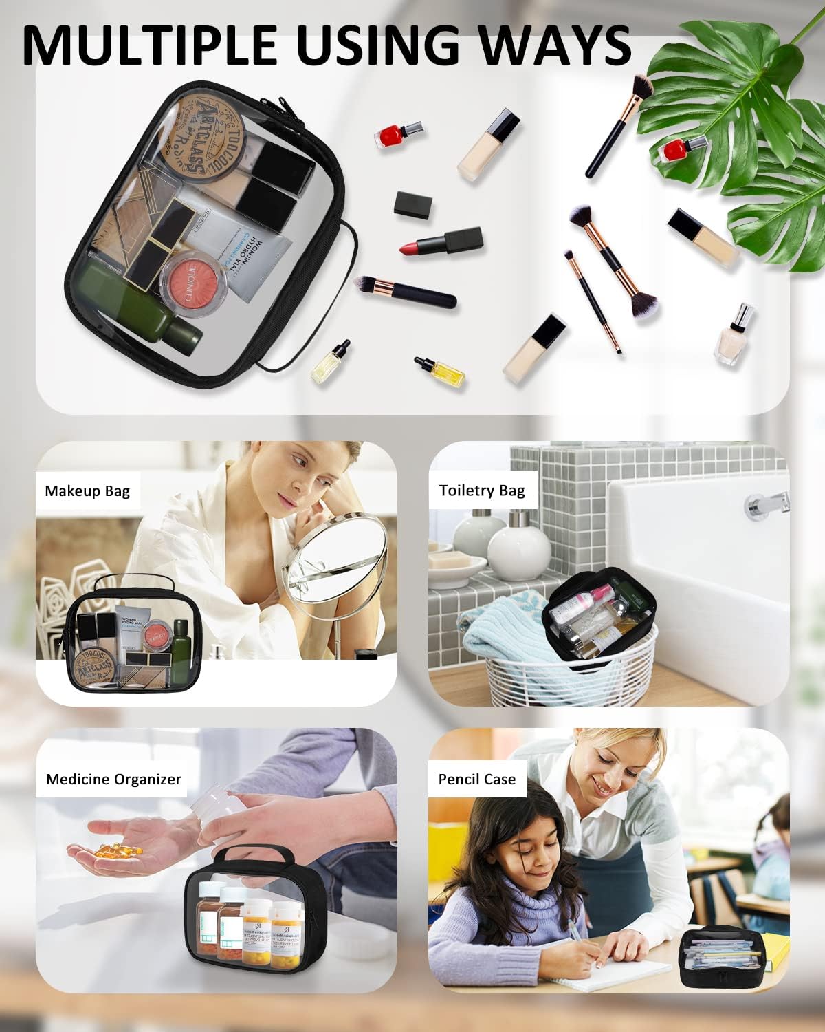 - 【High-quality Makeup Bag】Made of premium clear PVC, strong polyester fabric and SBS brand zipper. Unlike some similar toiletry bags which are made of inferior material. Our bags are more clear, more sturdy, more stylish. No foul plastic smell, take care of your health.