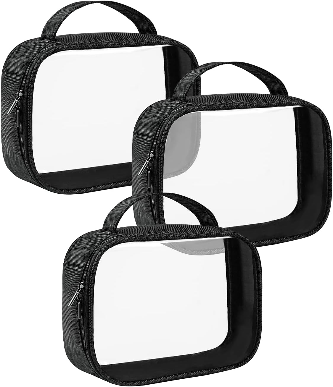 Moyad TSA Approved Clear Toiletry Bag with Handle, 3 Pack Quart Size 3-1-1 Liquids Pouch for Travel, Transparent Makeup & Cosmetic Organizer for Women Men, Black