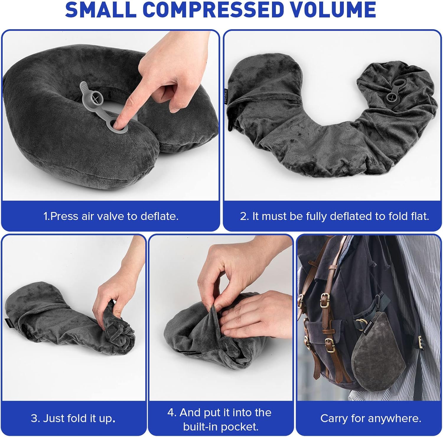 - ✈Ease Of Use: It's super-easy and effective to blow up because of the unique valve. The inflatable neck pillow is squishy and comfortable when inflated. And it is easy to adjust the neck pillow's firmness and level of support to your comfort level by inflating or deflating it. Once the airplane travel was over, it took seconds to deflate the bag and store it with no fuss.