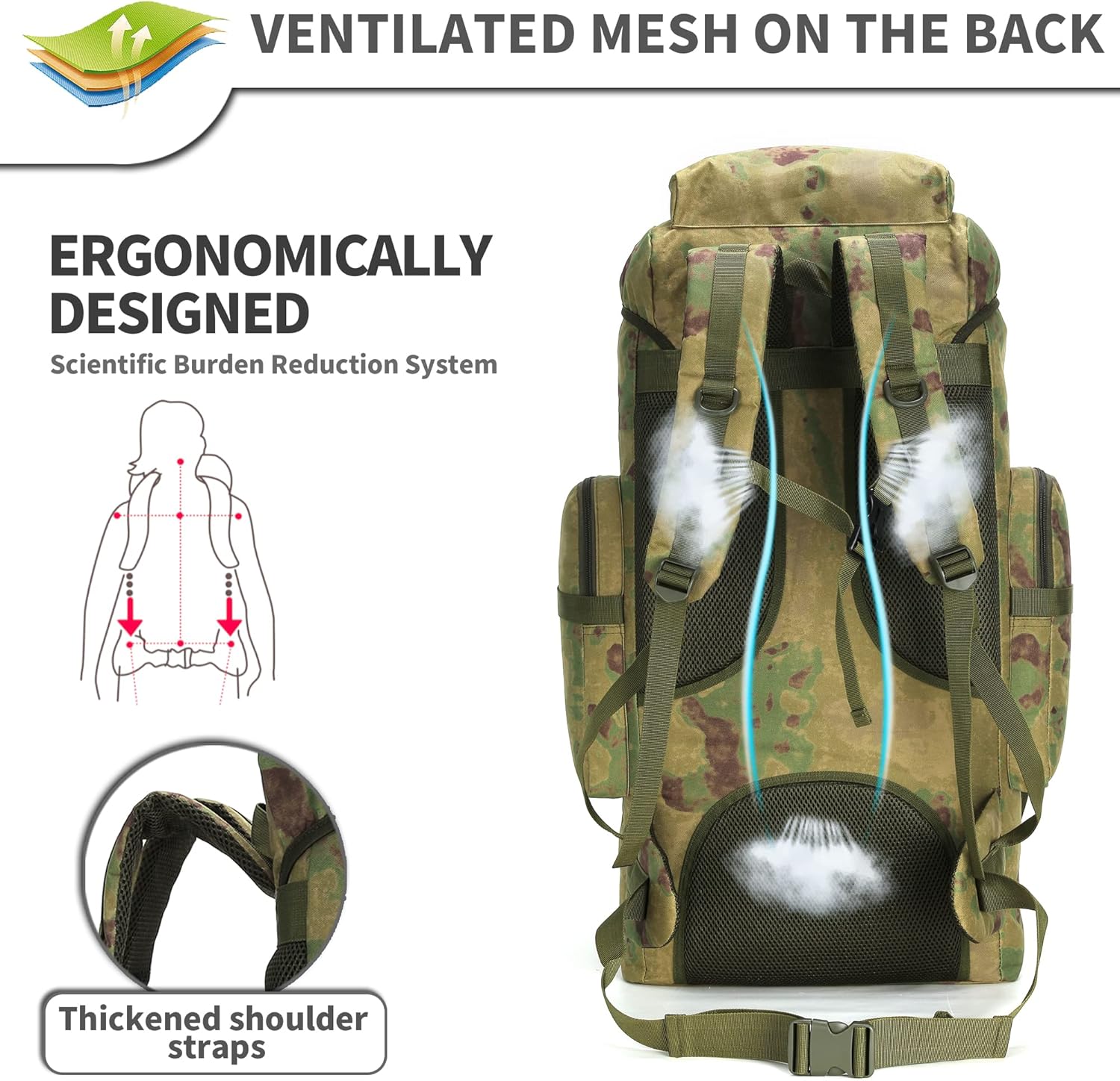 - 【Large-capacity Loading】: 80/70L large-capacity camping backpack, large-capacity main storage + 4 external system, the main bag can hold clothes, sleeping bags and travel items, and can hold 2-3 people travel equipment. Four external systems can be used for daily necessities + side water bottles.