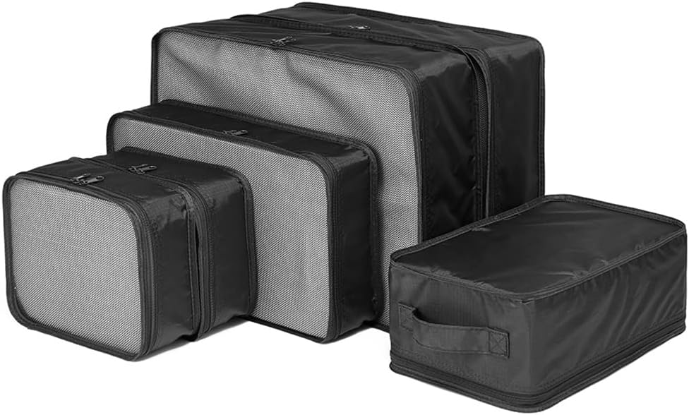 - A MUST HAVE. Most of so called Packing Cubes are not all coming with CUBES. While this one is definately REAL that has a bounus double layer shoe bag which can pack one pair of sneakers and one pair of slippers.