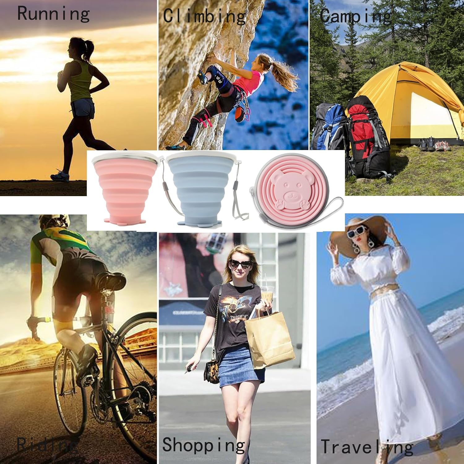 - Application: collapsible cup with lid is suitable for concerts, sports fields, mountain climbing, camping, cycling, tourism, football fields, outdoor hiking, camping, travel, and sport events.