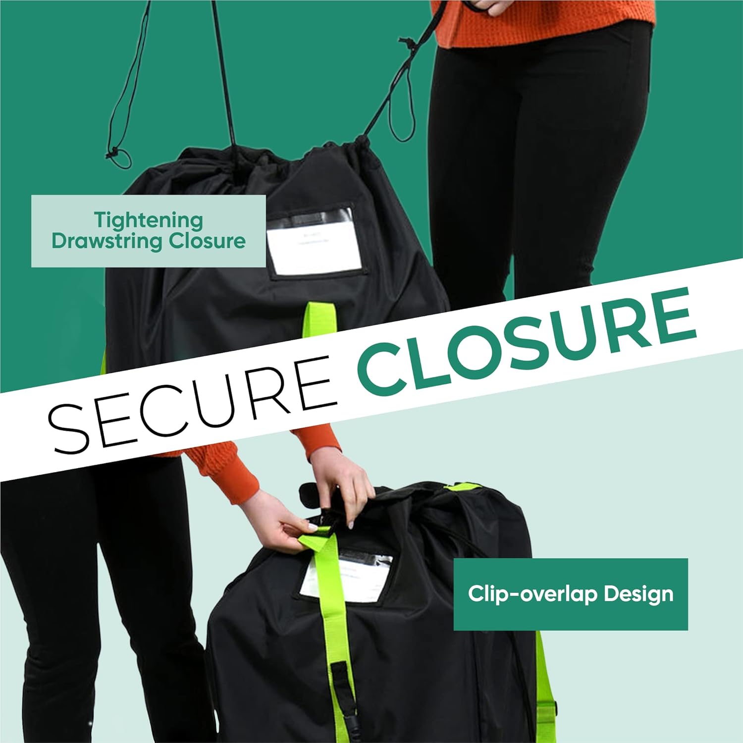 - Waterproof & Secure Protection – Designed with waterproof material, secure drawstrings, and an overlap clip closure, this bag keeps your baby's car seat protected from dirt, dust, and moisture in any travel condition.