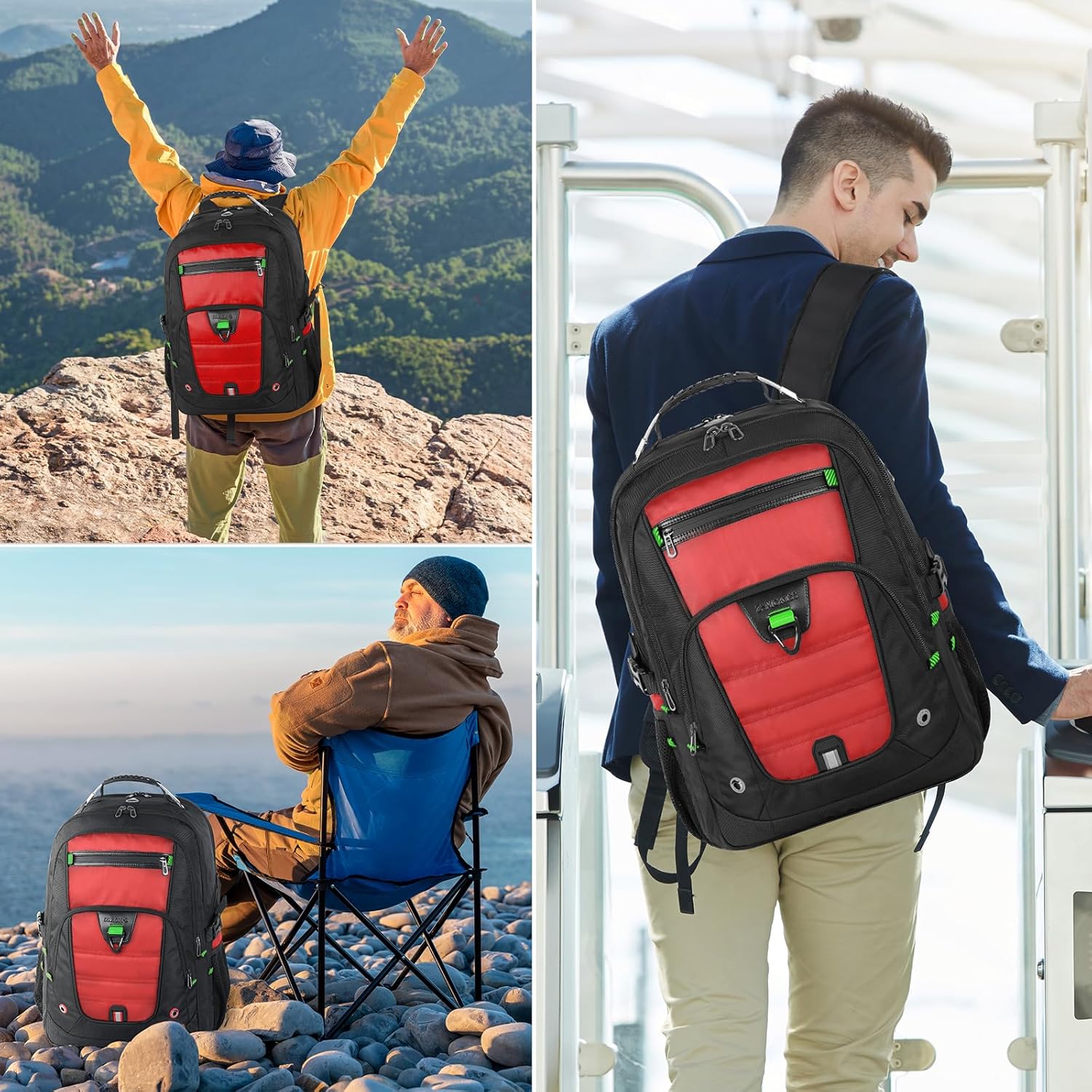 - 【Comfortable Ergonomic Design】: The ergonomic design of this 17 Inch laptop backpack ensures it comfortable to wear even with all your gear loaded. The travel backpack comfortable breathable straps help relieve shoulder pressure. The big backpack for school with a sturdy handle on the top for carrying, side compression straps keep the carry on backpack at you requires. luggage straps makes it easy to attach your backpack to the luggage trolley, making your travels more convenient