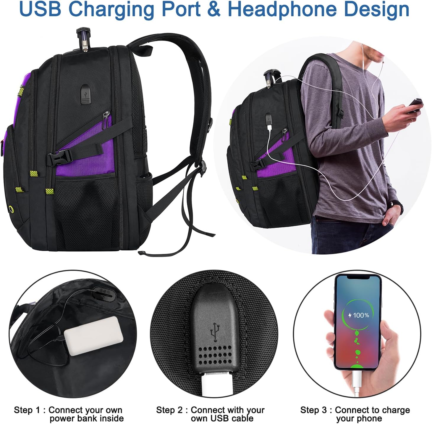 - 【USB Port & Headphone Design】: This 17Inch laptop backpack offers you a more convenient way to charge your phone. External USB port with set-in charging cable offers convenient charging your cellphone and other electronic devices everywhere. (Tips: power bank is not included) A hole for headphone outside gives easy access to Earphone usage. As a large backpack for school/backpack for men/backpack for women/travel carry on backpack, you will enjoy It's fashionable and convenient everywhere