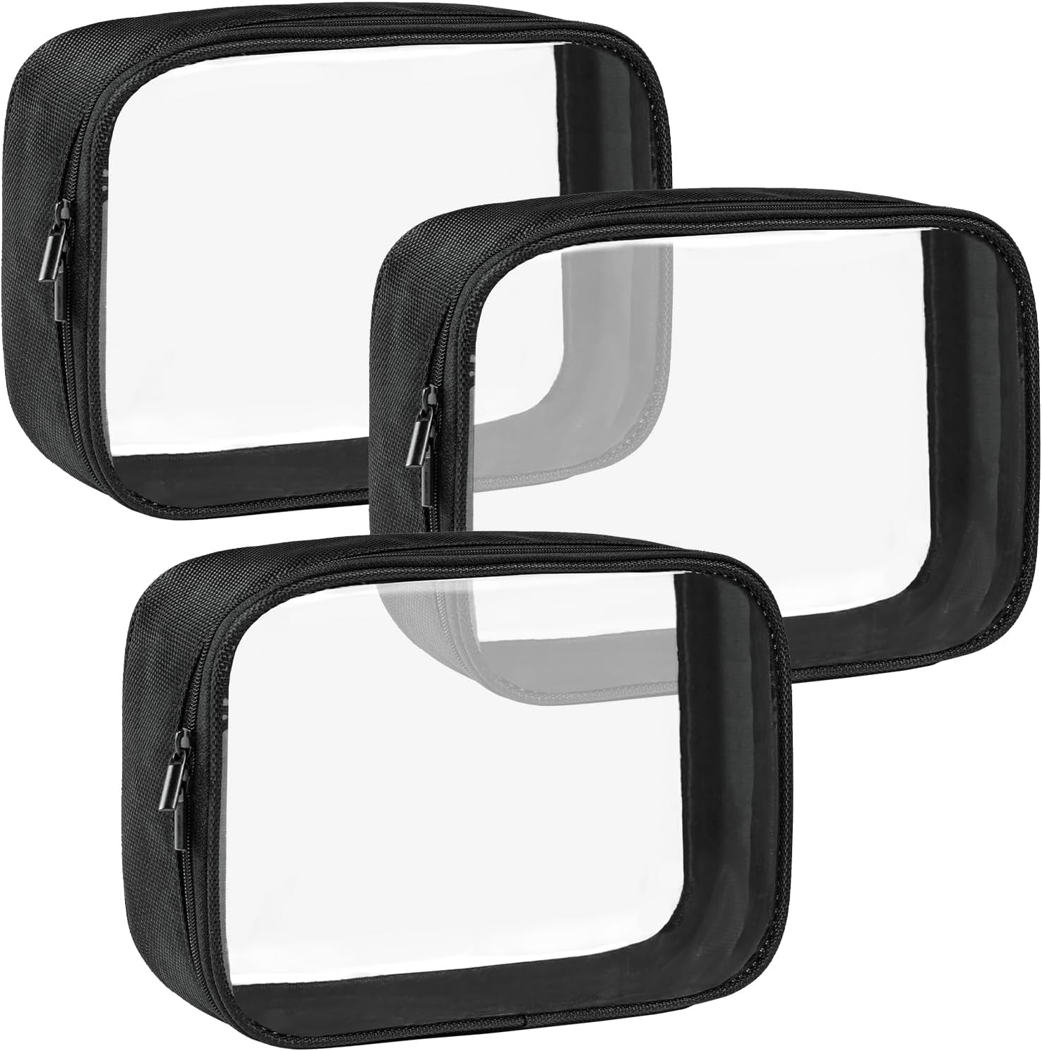 Moyad TSA Approved Clear Toiletry Bag, 3 Pack Quart Size 3-1-1 Liquids Pouch for Travel, Transparent Makeup & Cosmetic Organizer for Women Men, Black