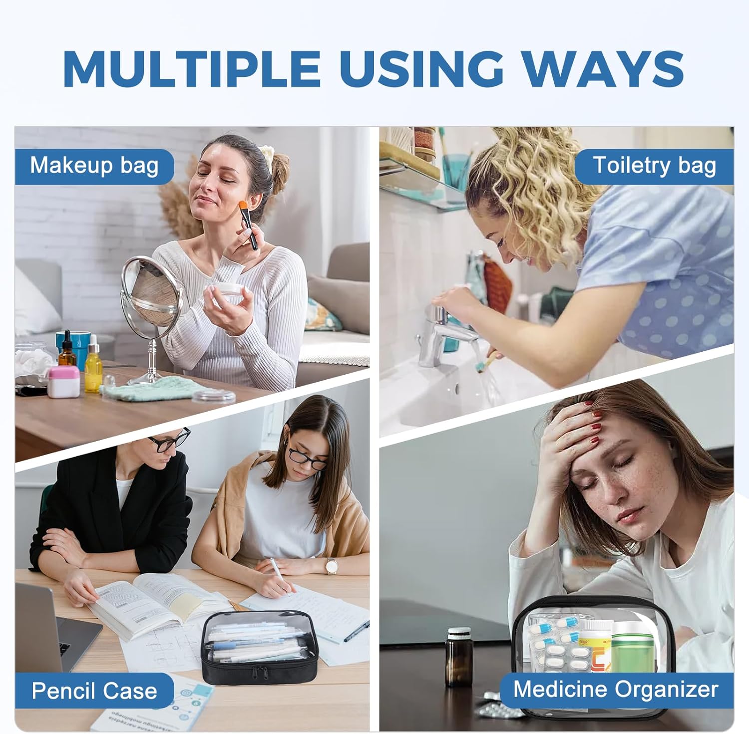 - TSA APPROVED: Moyad toiletry bags is made of clear PVC material and strictly complies with TSA 3-1-1 liquids rule. Each make-up bag measures 8.2 x 5.5 x 2.3 inches and is big enough to hold some 3oz liquid bottles. It helps you find items easily and pass security check quickly