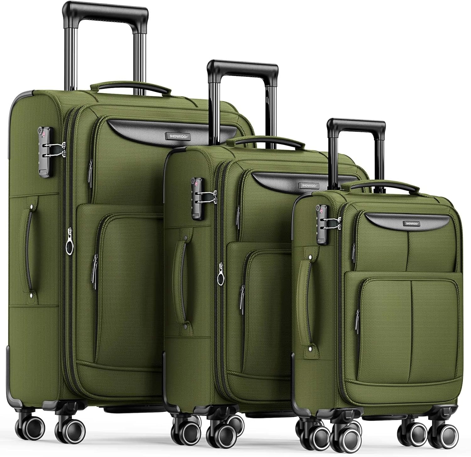 SHOWKOO Luggage Sets 3 Piece Softside Expandable Lightweight Durable Suitcase Sets Double Spinner Wheels TSA Lock Olive Green (20in/24in/28in)