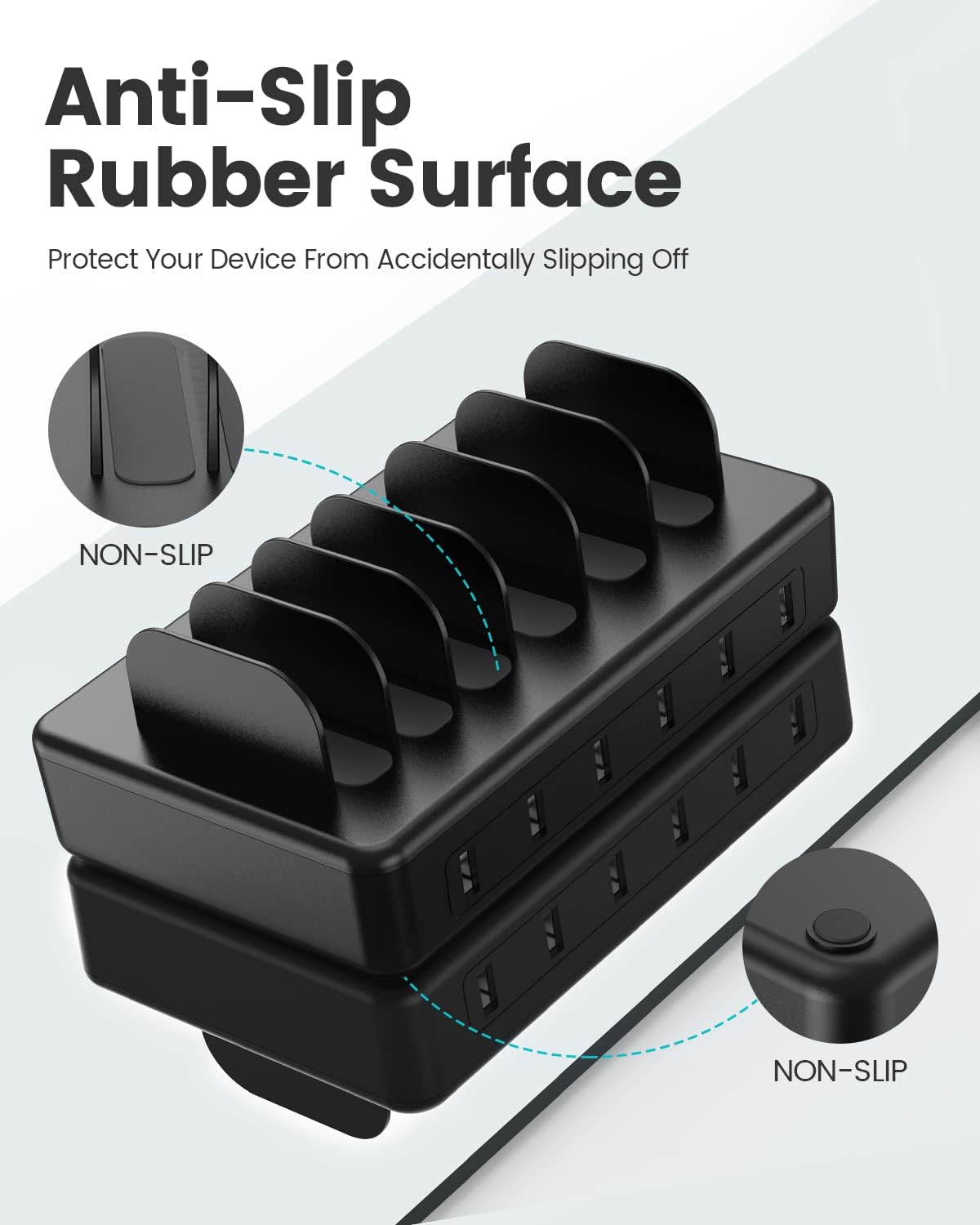 - 【Less mess, More organized】The multiple charging station has 6 smart USB ports that put all your devices in one place, simultaneously charge your smartphone, power bank, tablet and other devices, and keep them organized neatly and save more space. Perfect for Big Family