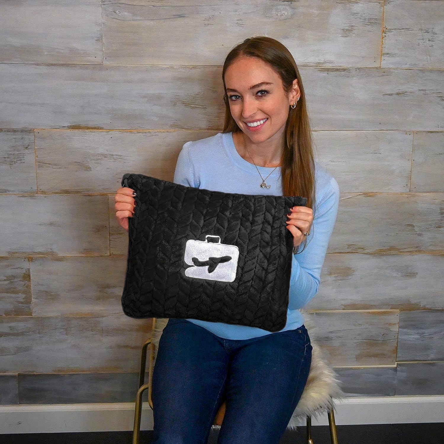 EverSnug Premium Travel Blanket Pillow - Soft 2 in 1 Airplane Blanket with Soft Bag Pillowcase, Hand Luggage Sleeve and Backpack Clip (Black)