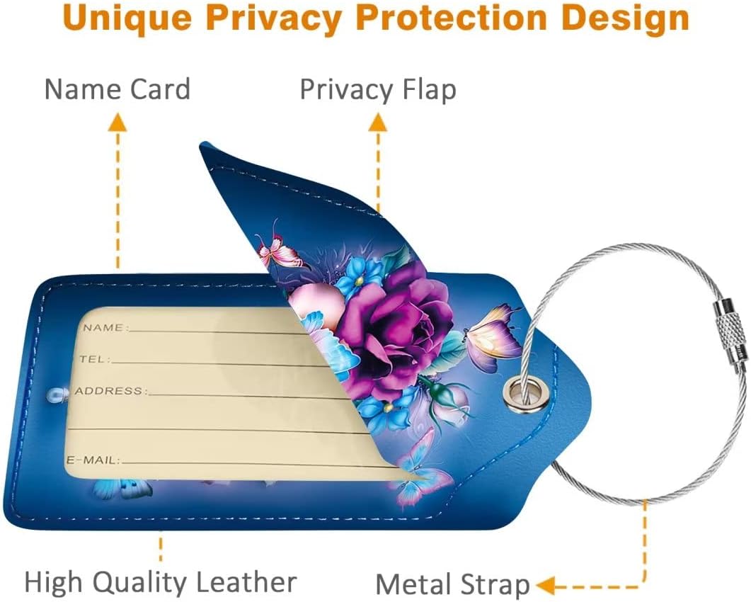 - 【Effortless Identification】With their captivating allure and fashionable appeal, our bag tags effortlessly showcase your unique personality while ensuring your suitcase stands out from the sea of ordinary bags. Easily spot your luggage amidst the chaos of airports or cruise ships, swiftly retrieving your belongings and avoiding any mishaps. Perfect for avid globetrotters, explorers of new horizons, and jet-setting professionals.