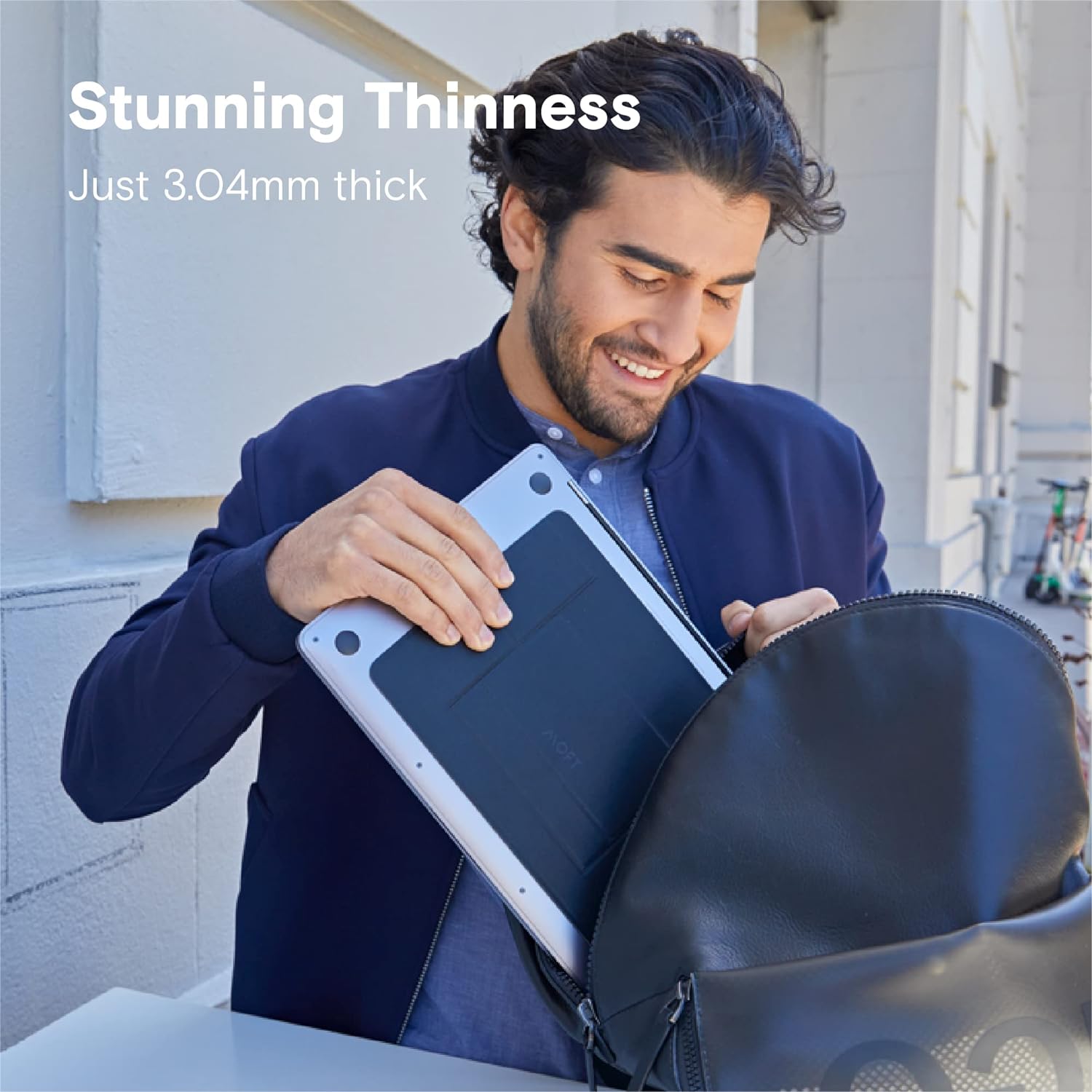 - [Paper-Thin] MOFT laptop stand is only 0.1 in thin and weighs a mere 3 oz, its small mearsurements makes it unfelt when carried and unsee when not in use.