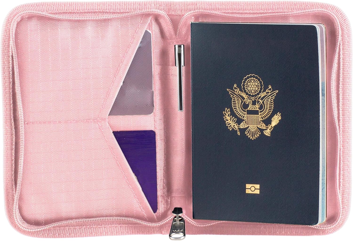 Passport Holder & Travel Wallet with RFID Blocking - Premium Document Organizer Case for Men and Women - Holds Passports, Cards, Tickets, ID, Cash - Compact Zippered Wallet - Rose