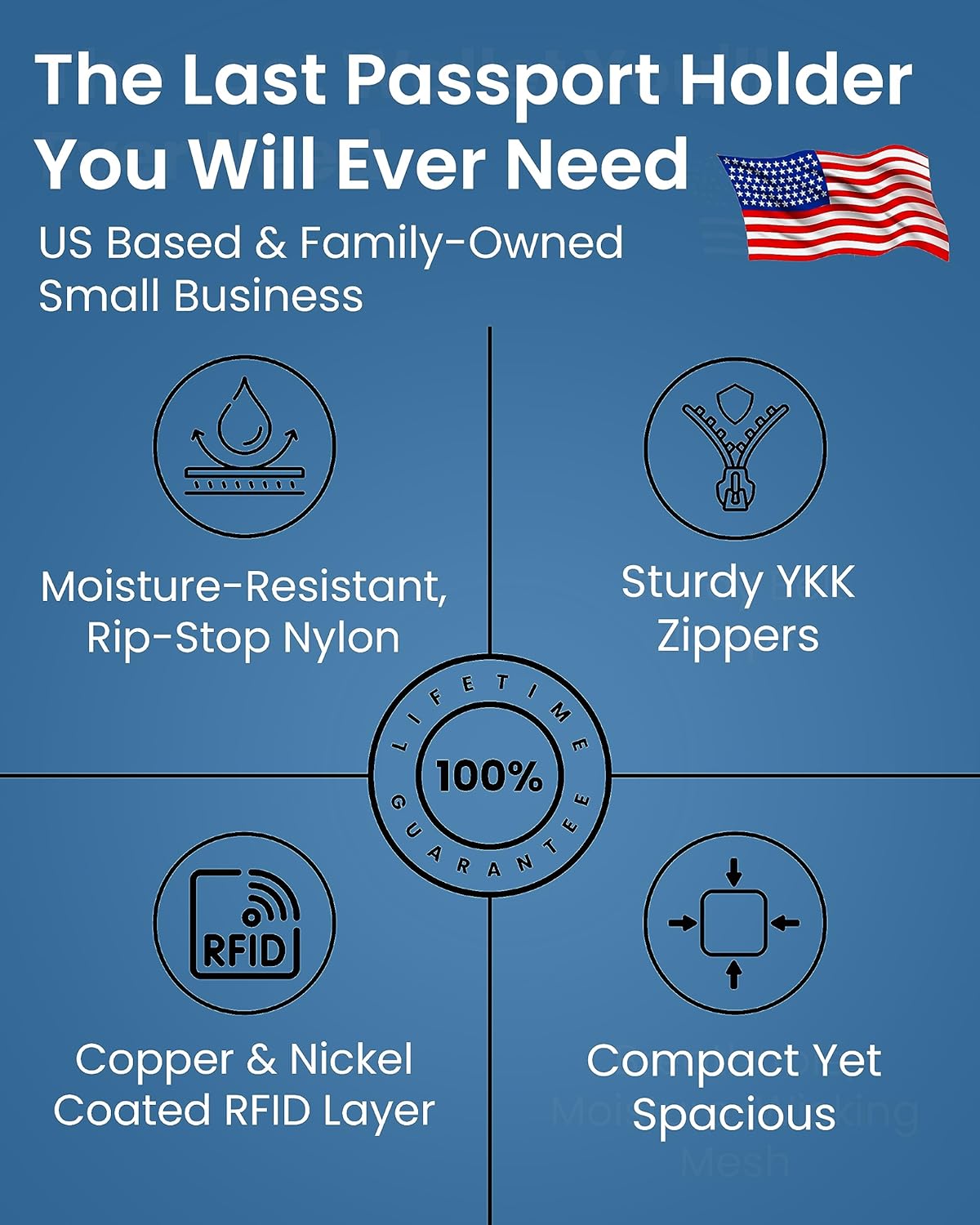 - Designed for Comfort and Organization - Lightweight and durable, this passport holder features zippered pockets to keep essentials neatly stored. The moisture-wicking rip-stop nylon helps keep your valuables dry and secure during your travels.