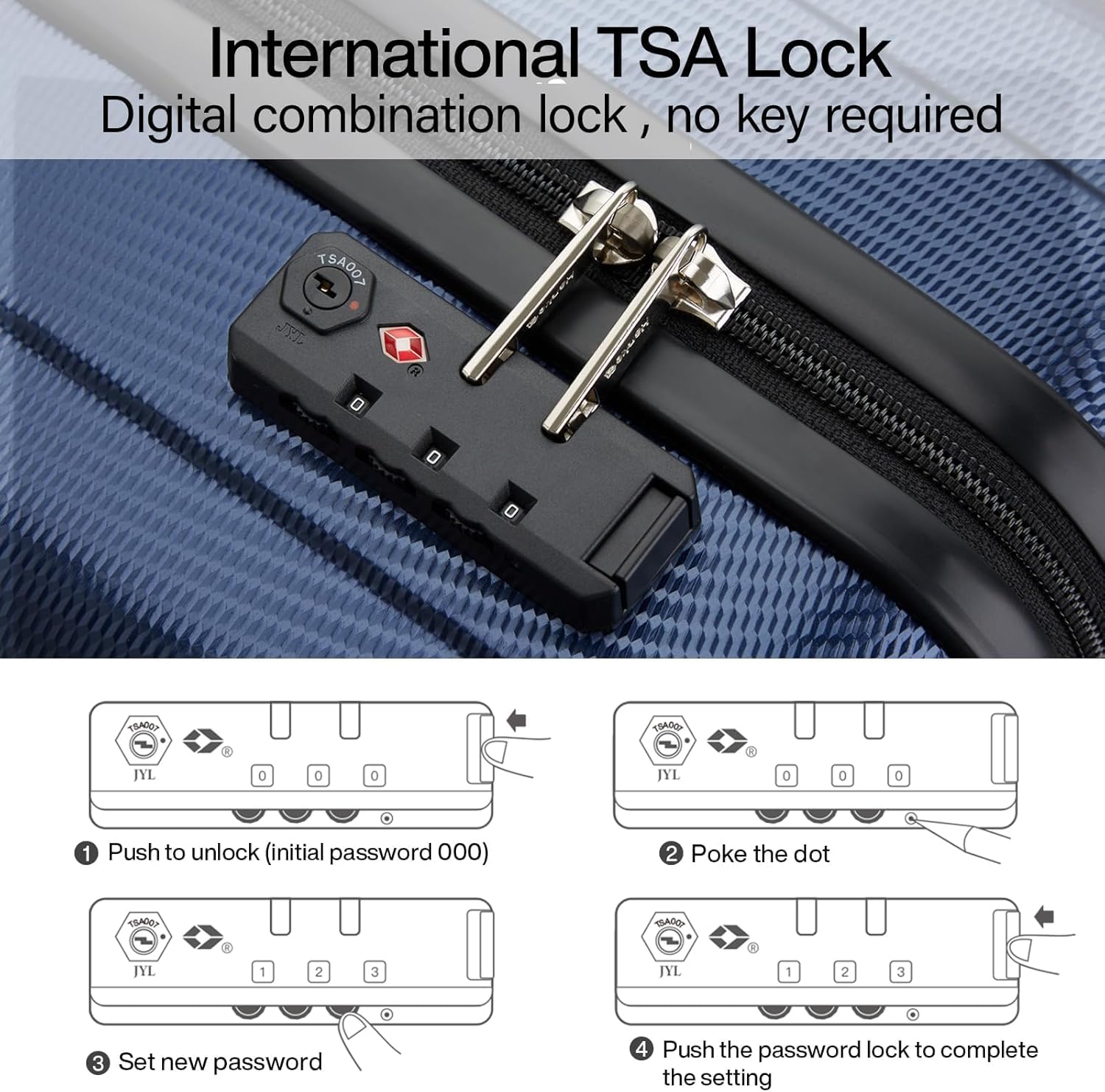 - 【Better Material】This is a suitcases with wheels hardshell,it get benifits from PC material and micro diamond texture on the surface, which is sturdy and scratch resistant,keeping travel suitcase beautiful trip after trip.The lining of this international carry on luggage is also very comfortable, and close fitting clothes can be stored with confidence.