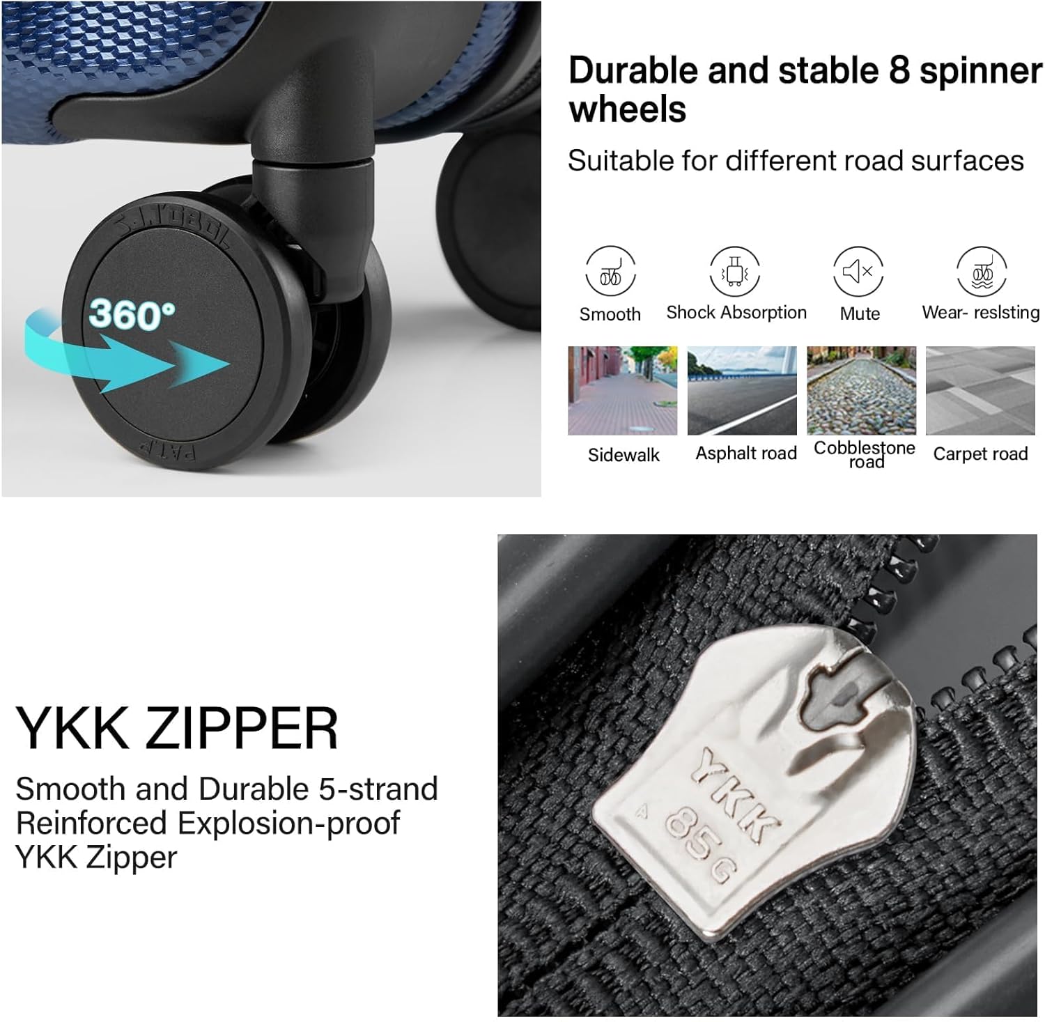 - 【High Quality Accessories】This is a travel luggage with wheels using SJ TOBOL brand wheels, it's very quiet and easy to operate, and can be easily used on cobblestone roads. The carry-on luggage with Smooth and reinforced explosion-proof zipper reverse coil prevents burst zipper.This is also a travel luggage,so safe and convenient,the telescopic handle with multi-steps adjustment.