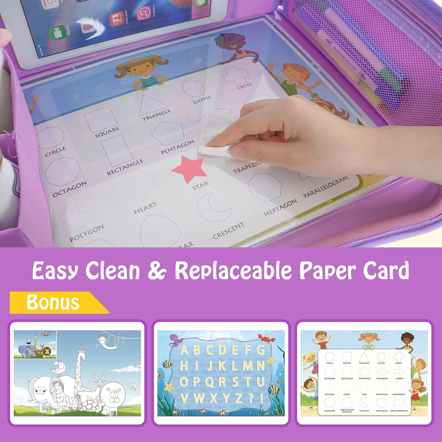 - Dry Erase Board With Bonus: 16.5" x 13" large carseat tray comes with 3 educational drawing papers with animal, letters & graphics, which not only provides children with space to draw and learn, but also can be used as a snack car seat tray, and parents can easily clean it by simply using a wet towel. Children will love the dry erase feature on the tray portion