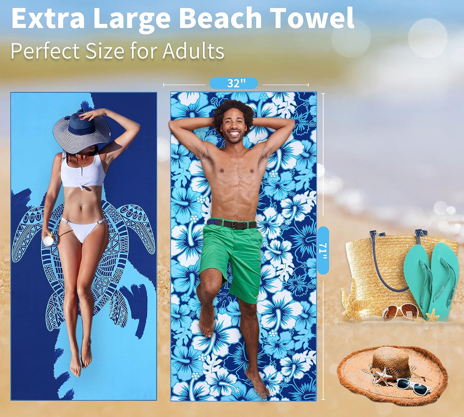 - Large Size and 2 Side Printed : 71 x 32 inch. In addition, we also have a unique beach towel pattern.Our beach towels have a strong color fastness,and the machine wash will not fade, the quality is good and suitable for women men and kids.We also offer 6 pack, 4 pack and 2 pack of beach towel for you to choose