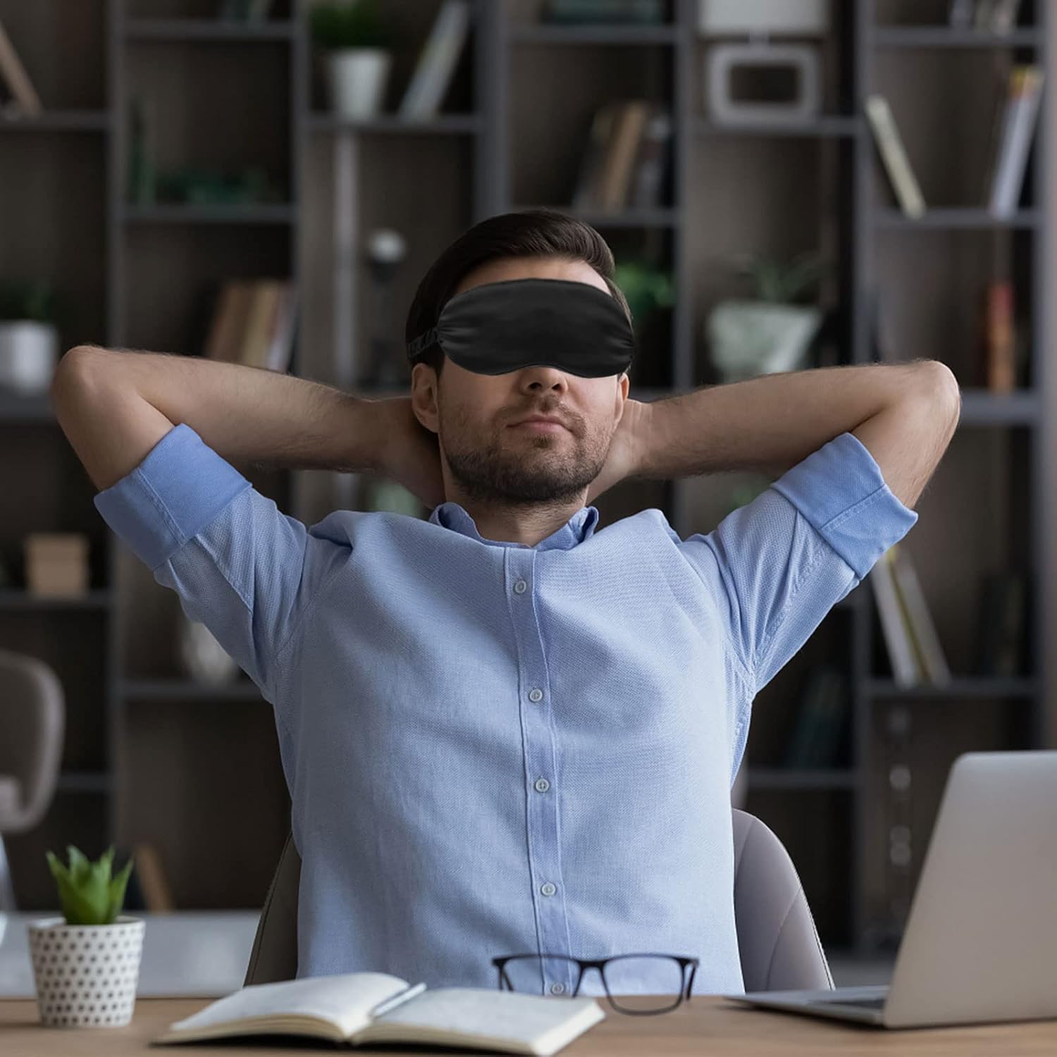 - Elastic Head Strap: eye covers feature a comfortable, Elastic and pain-free head strap that does not move or fall off while you’re sleeping. This is sleep aid mask is so lightweight yet fits perfectly on your face that you can wear it for sleeping, concentration or meditating for Yoga. The headband design won't tangle hair like contoured masks, fit for side-sleepers as well.