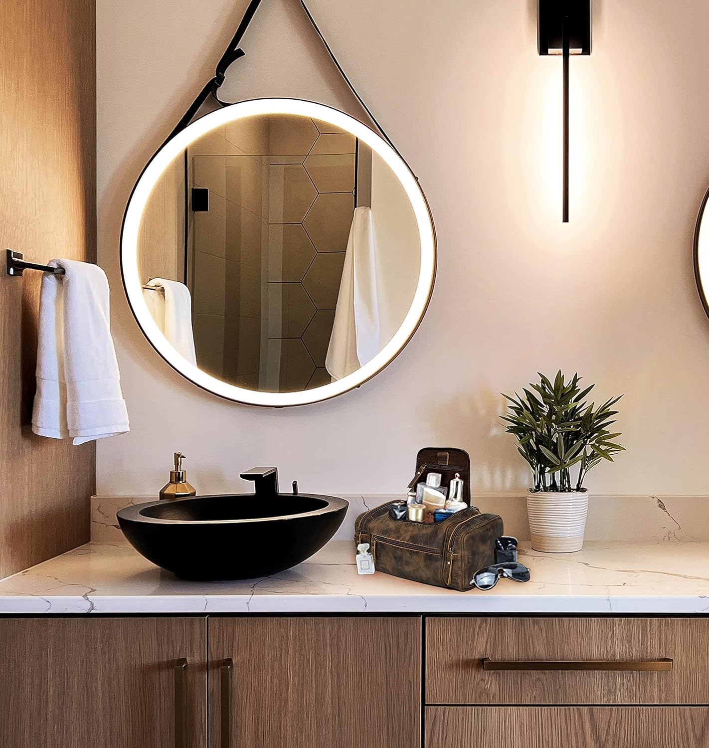 - Premium grain leather - our exclusive xl large leather toiletry bag for men is made from top grain leather with waterproof lining and solid brass hook for hanging. This travel toiletry bag will last a lifetime.