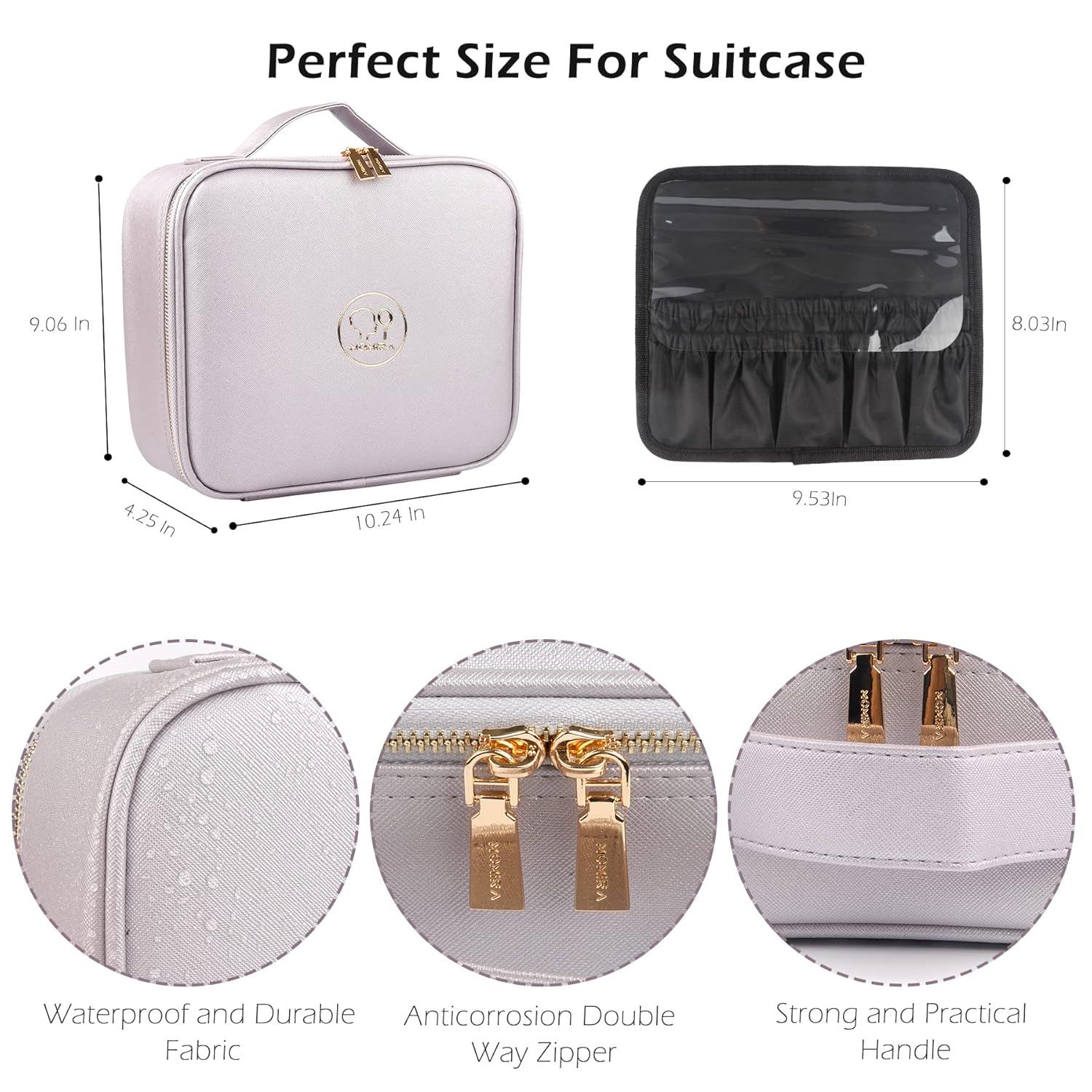 - đăMultifunctional and Partitionable Cosmetic Storage BoxăMOMIRA's cosmetic case is more convenient to use. Our travel makeup case includes Six detachable EVA partitions, and a large brush storage board with10 compartment bags, which can accommodate multiple cosmetics and makeup brush specifications, and meet your needs for various combinations. Partitions have a layer of anti-drop sponge pad on the surface, which can well protect the cosmetics inside, making sure it doesn't break or leak.