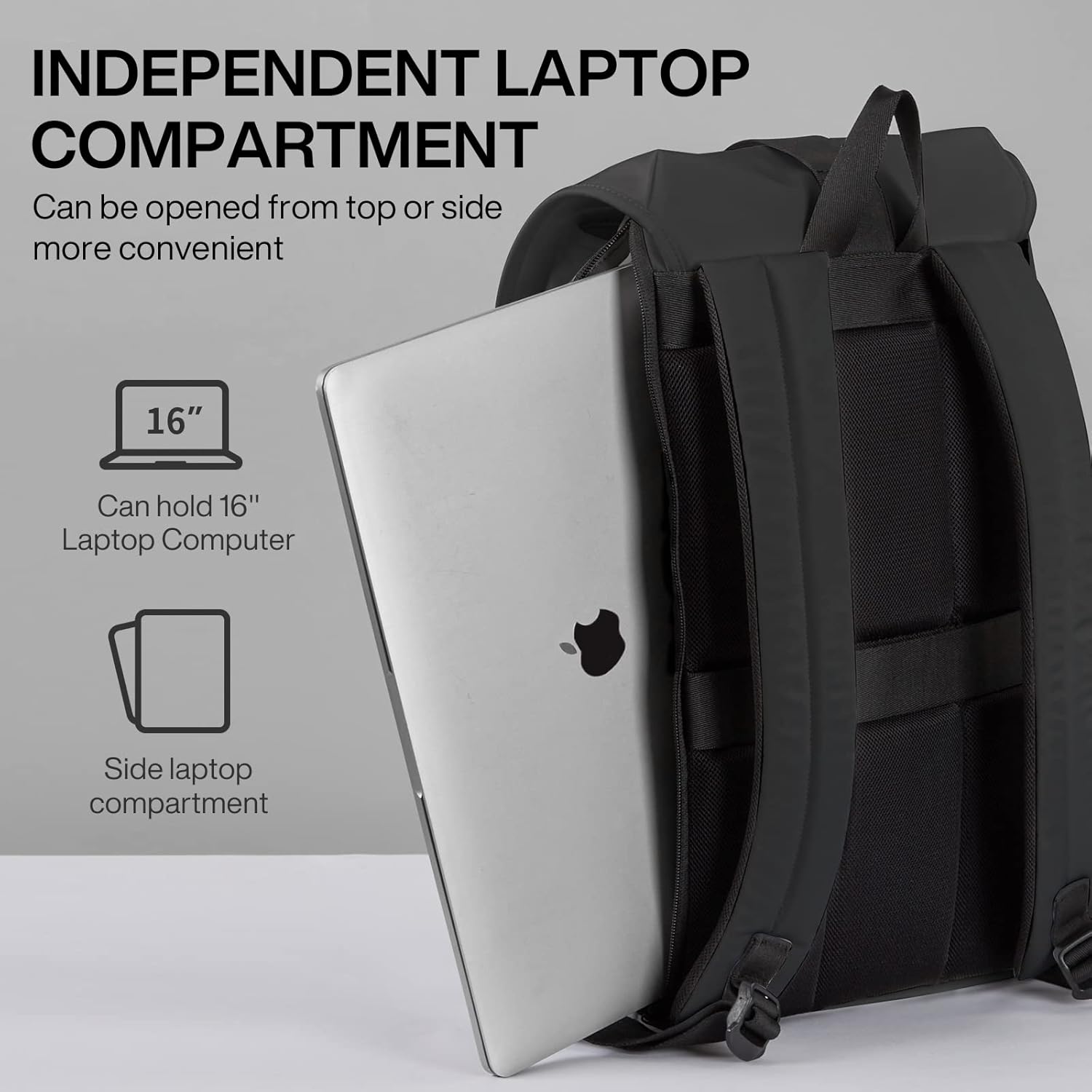 - 【LARGE CAPACITY & WELL ORGANIZED】Portable flip design allows you to pick up items quickly, backpack has a spacious main compartment to store lots 3-5 pieces of clothes, several books, so many other items. Independent laptop compartment holds laptops up to 16inches and under(can be opened from top or side more convenient). Double side pockets with cover and adjustable buckle for small items, such as keys, tissues, power banks.