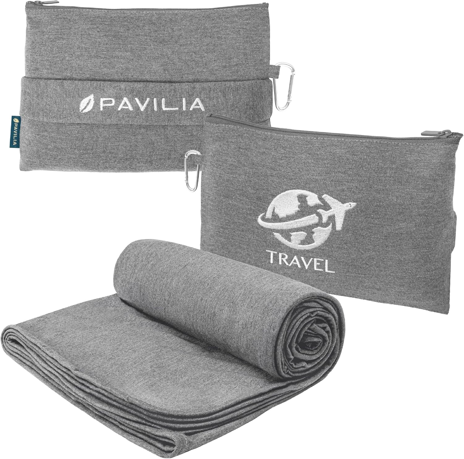 - PACKABLE & PORTABLE: PAVILIA flight blanket can be easily transformed into a cushioned pillow for head, neck, lumbar support. The lightweight travel blanket is foldable into a bag for easy convenient storage while camping, traveling, flying on airplane