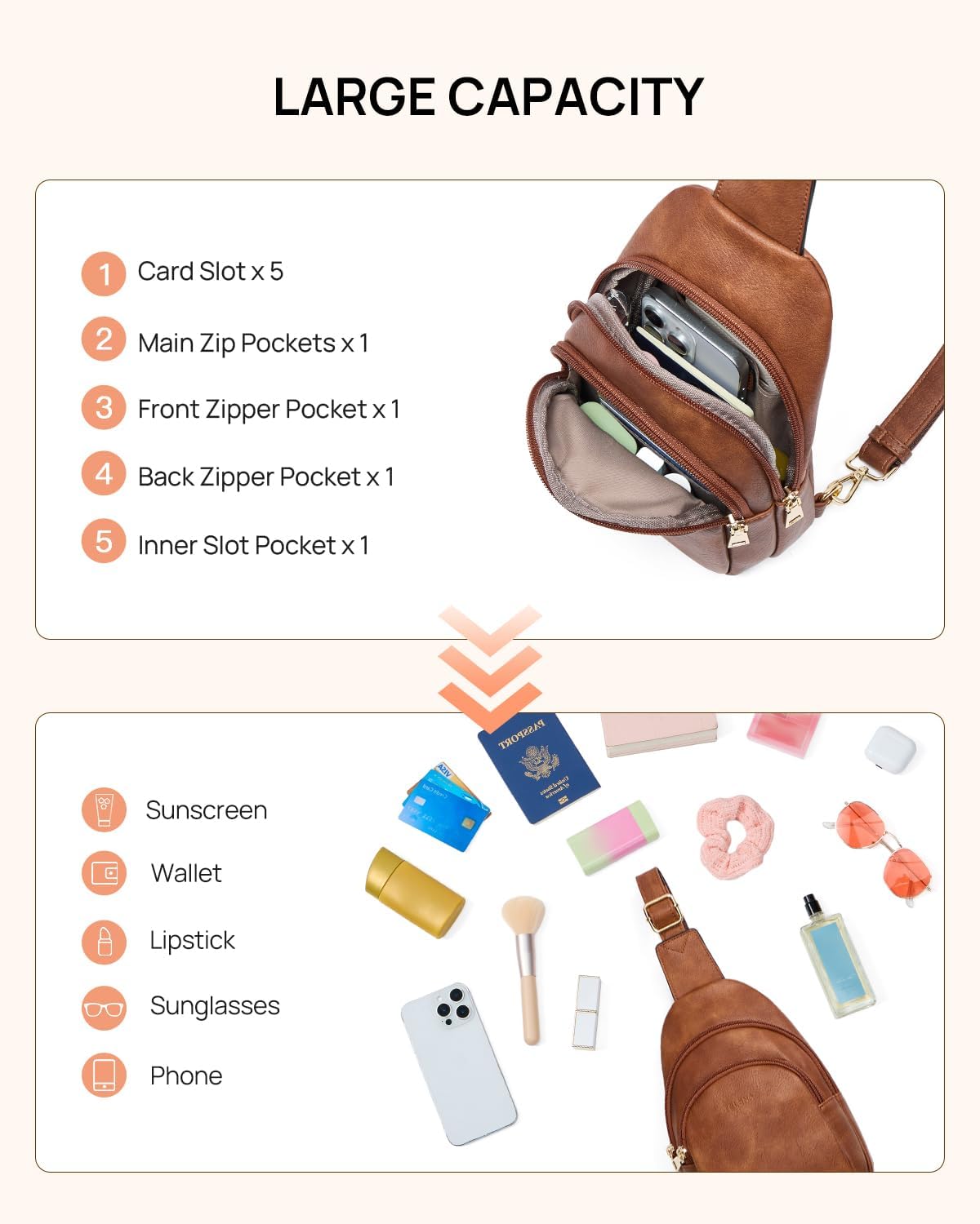 - Durable Material: Sling bag for women made with premium faux leather and odorless, both functional and fashionable. This crossbody fanny pack allow you to carry around all your essentials hands-free while keeping your outfit look chic and well-matched