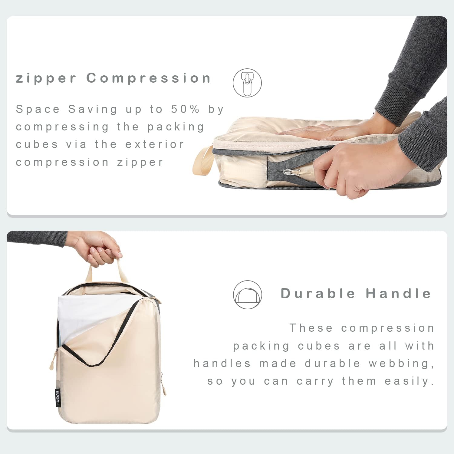 - Space Saving: Save up to 50% space by compressing the packing cubes via the exterior compression zippers; And all the zippers we use are SBS zippers, it makes sure the packing organizers could be opened and closed easily